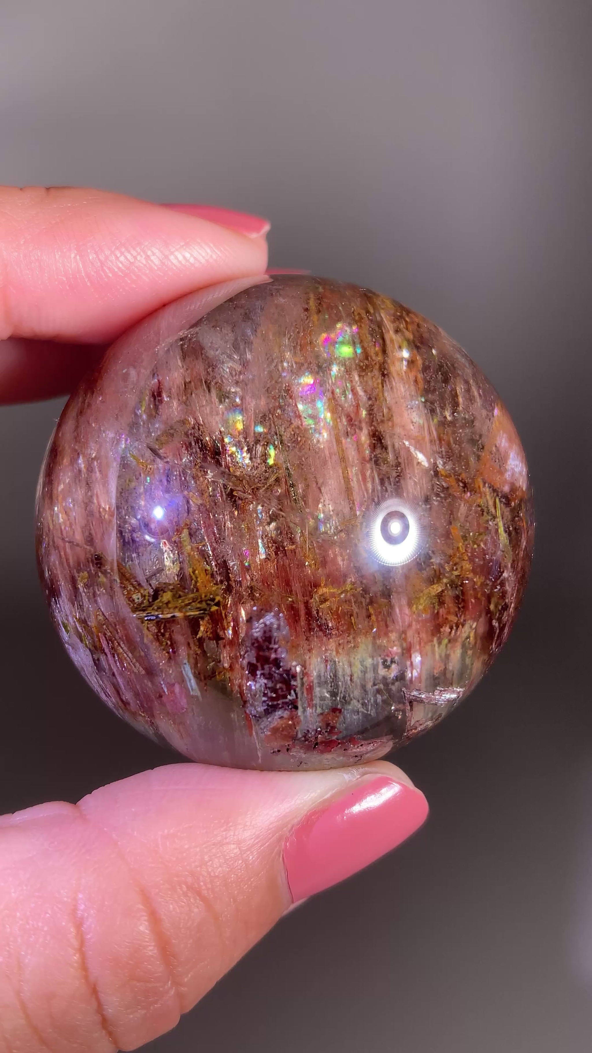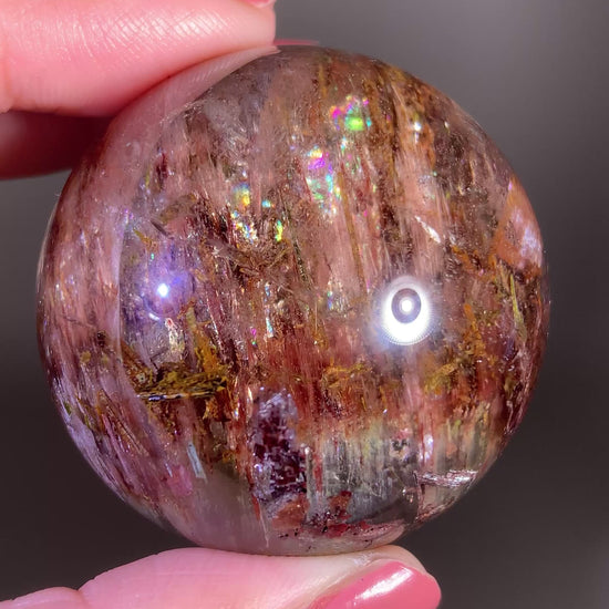 This large Garden Quartz sphere showcases a stunning blend of Pink Amphibole, vivid Tourmaline, and rich green Epidote. The layered garden formations create depth and movement inside the quartz, while the soft pink amphibole adds a silky, glowing texture. Pops of colorful tourmaline and earthy epidote bring beautiful contrast, making this an exceptional multi-mineral collector’s piece full of natural beauty and detail.