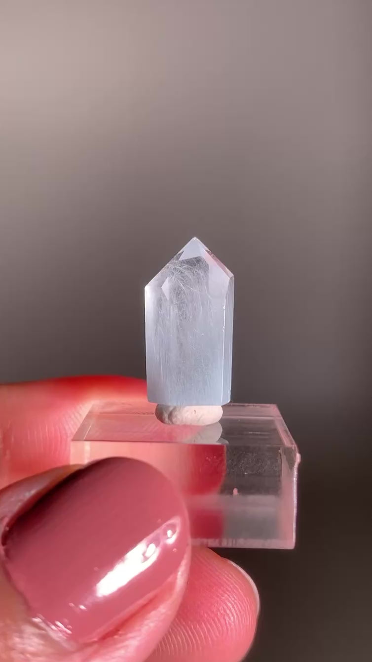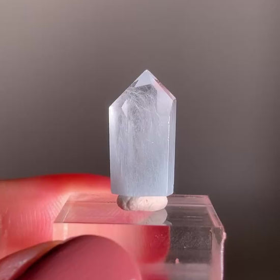 This rare Blue Amphibole tower features soft, ethereal shades of blue and white, often with cloud-like inclusions that create a dreamy, celestial appearance. Known for its calming and spiritual energy, Blue Amphibole is believed to support intuition, mental clarity, and inner peace. Polished into a sleek tower, it’s ideal for meditation and bringing a serene touch to any space.