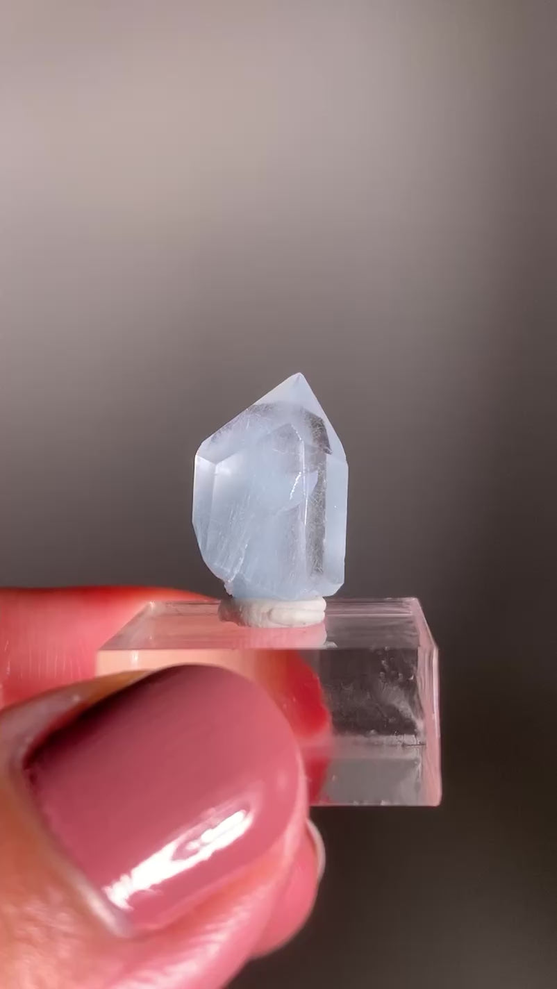 This rare Blue Amphibole tower features soft, ethereal shades of blue and white, often with cloud-like inclusions that create a dreamy, celestial appearance. Known for its calming and spiritual energy, Blue Amphibole is believed to support intuition, mental clarity, and inner peace. Polished into a sleek tower, it’s ideal for meditation and bringing a serene touch to any space.