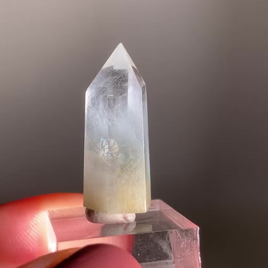 This rare Blue Amphibole tower features soft, ethereal shades of blue and white, often with cloud-like inclusions that create a dreamy, celestial appearance. Known for its calming and spiritual energy, Blue Amphibole is believed to support intuition, mental clarity, and inner peace. Polished into a sleek tower, it’s ideal for meditation and bringing a serene touch to any space.