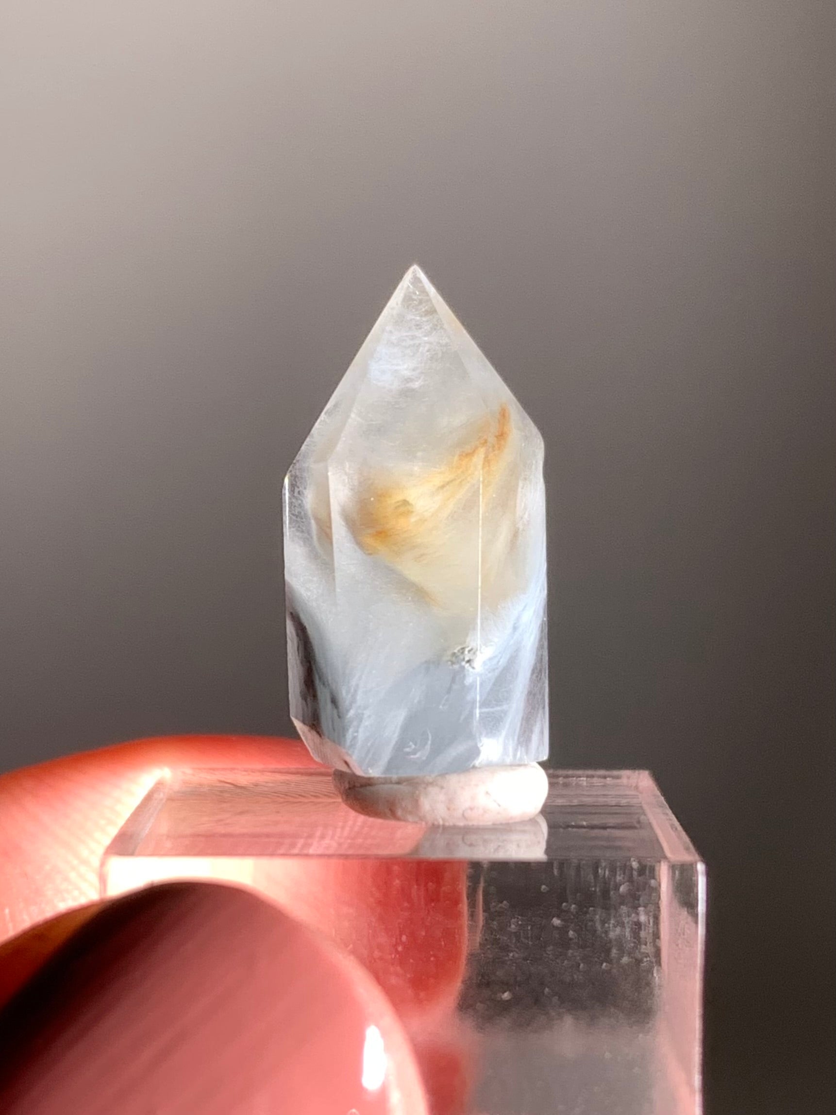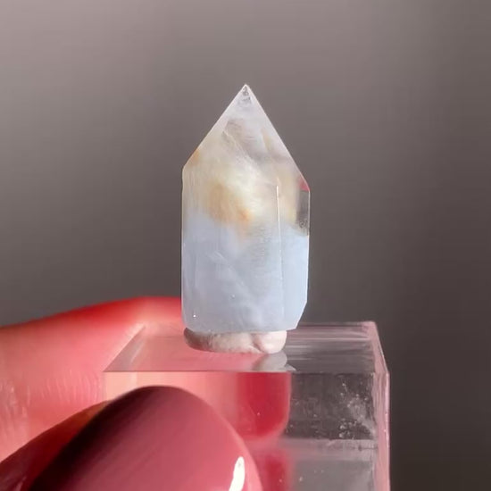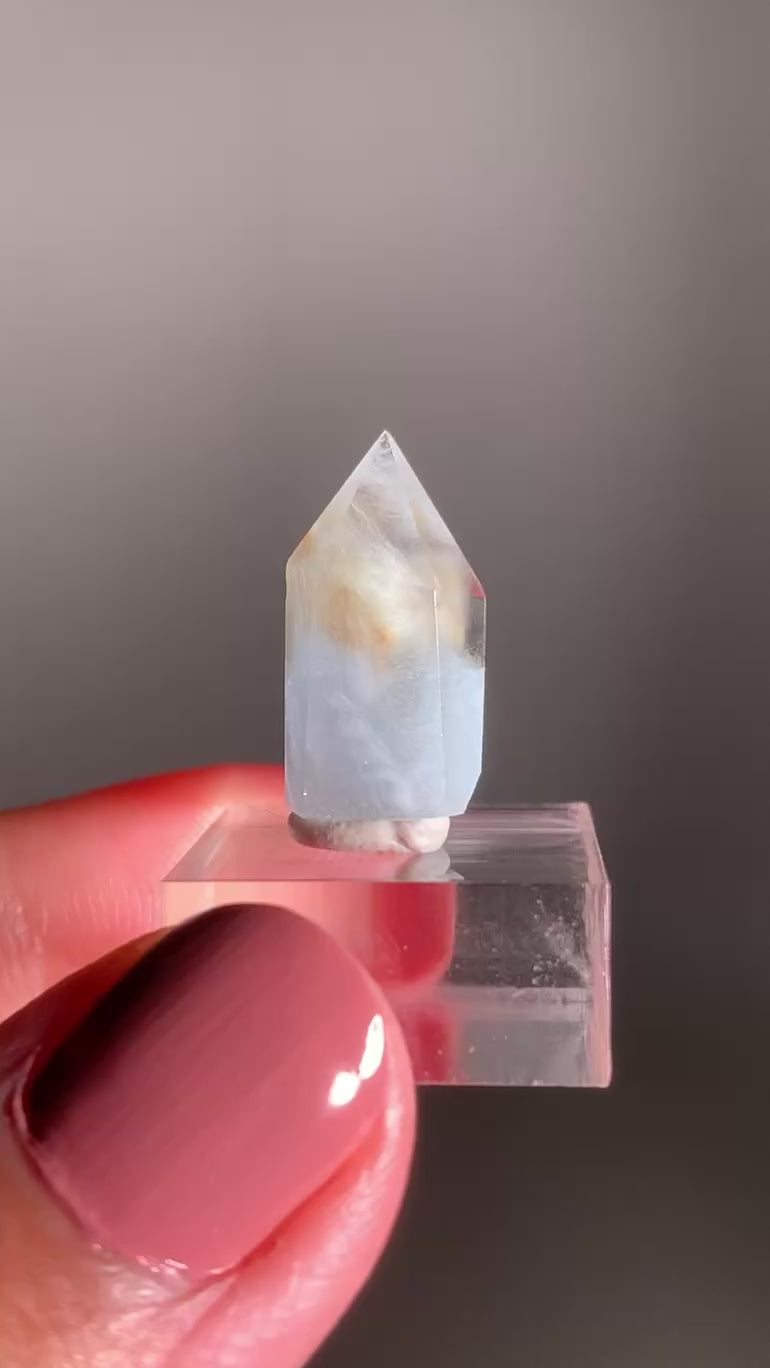 This rare Blue Amphibole tower features soft, ethereal shades of blue and white, often with cloud-like inclusions that create a dreamy, celestial appearance. Known for its calming and spiritual energy, Blue Amphibole is believed to support intuition, mental clarity, and inner peace. Polished into a sleek tower, it’s ideal for meditation and bringing a serene touch to any space.