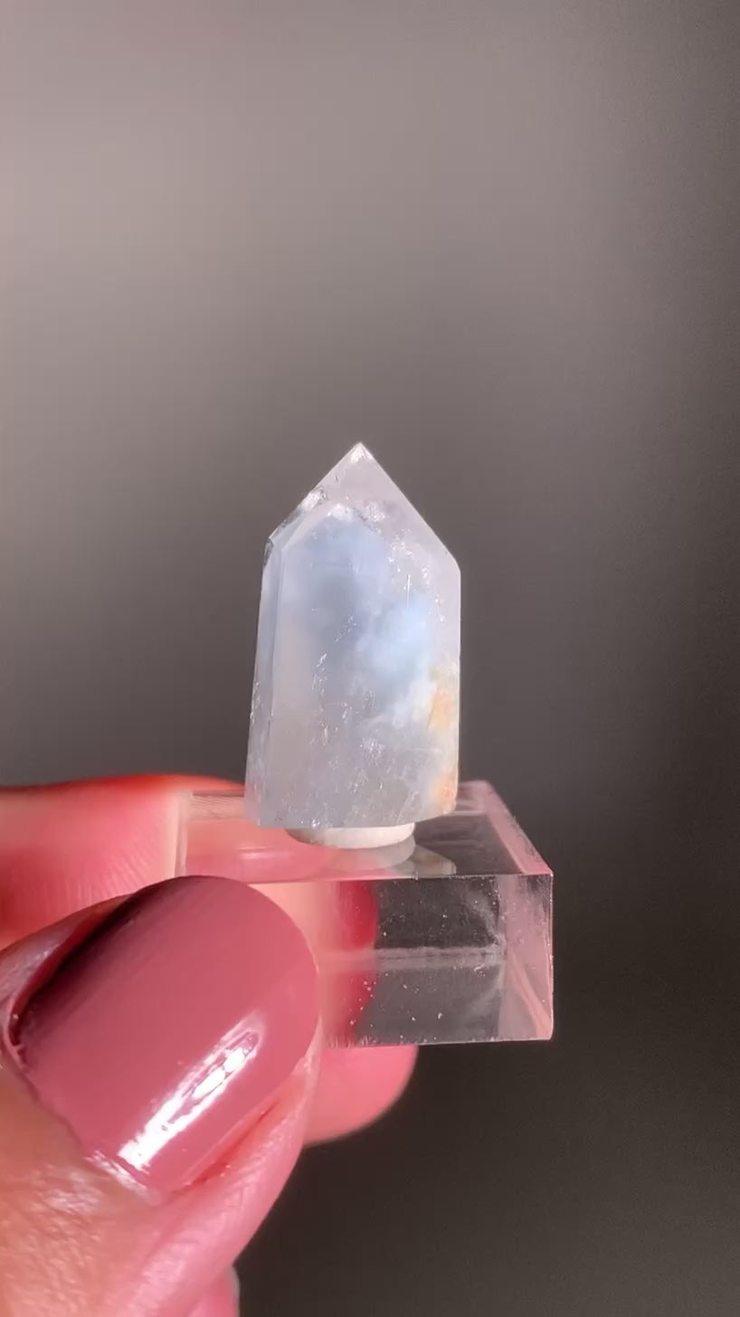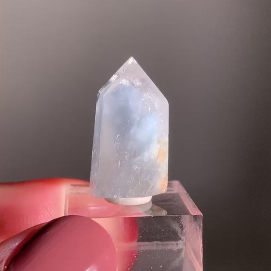 This rare Blue Amphibole tower features soft, ethereal shades of blue and white, often with cloud-like inclusions that create a dreamy, celestial appearance. Known for its calming and spiritual energy, Blue Amphibole is believed to support intuition, mental clarity, and inner peace. Polished into a sleek tower, it’s ideal for meditation and bringing a serene touch to any space.