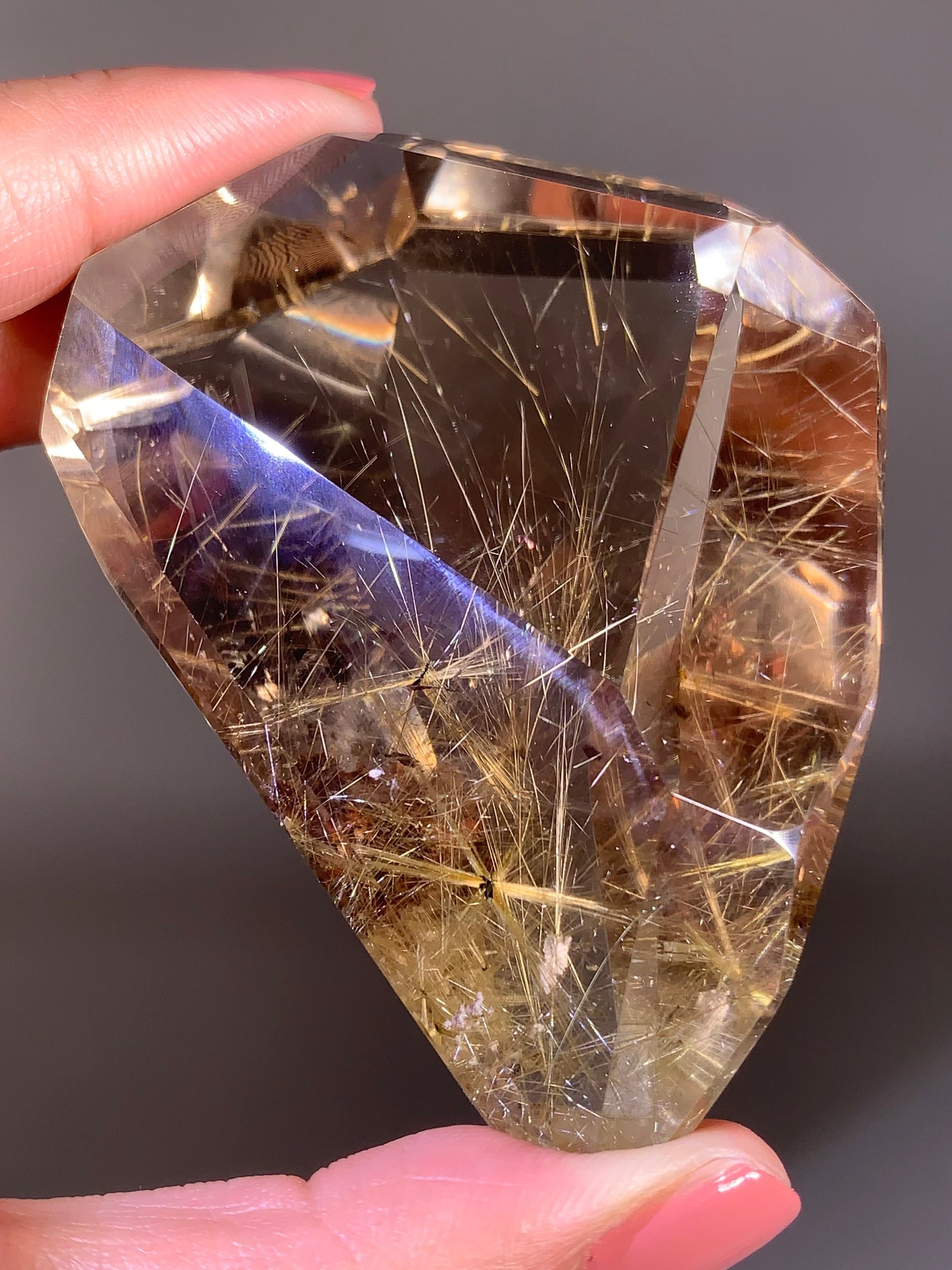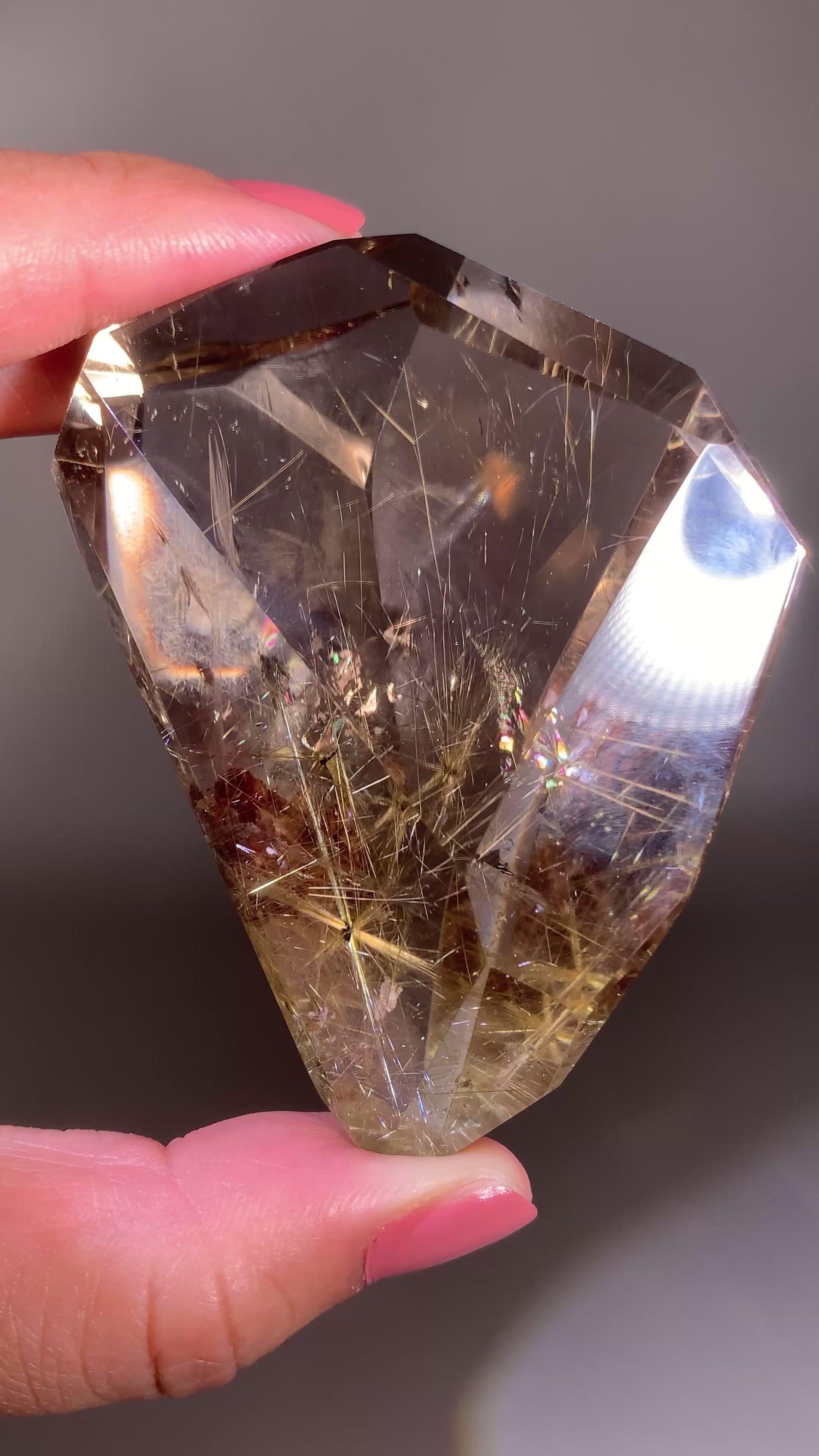 Collector-Grade Gold Star Rutile in Smoky Quartz Polished Freeform from Brazil