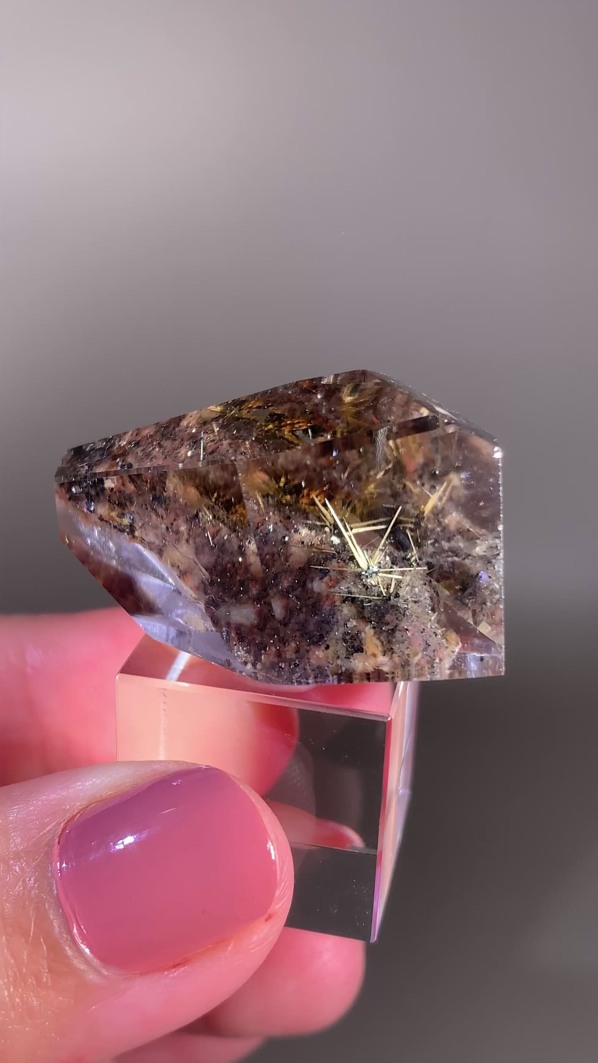 High-Quality Gold Star Rutile with Sparkling Hematite and Garden Inclusions Polished Freeform — Brazil