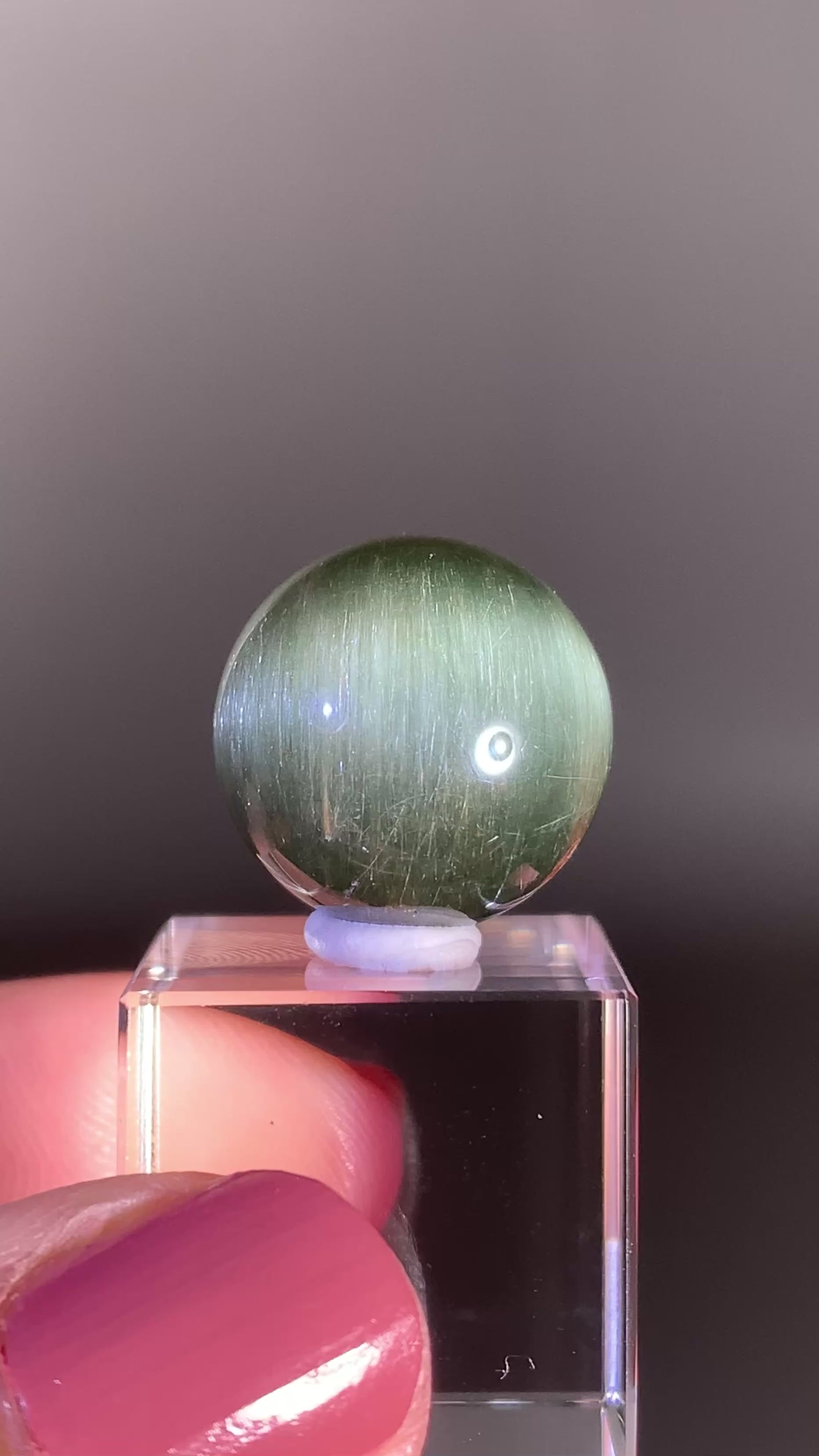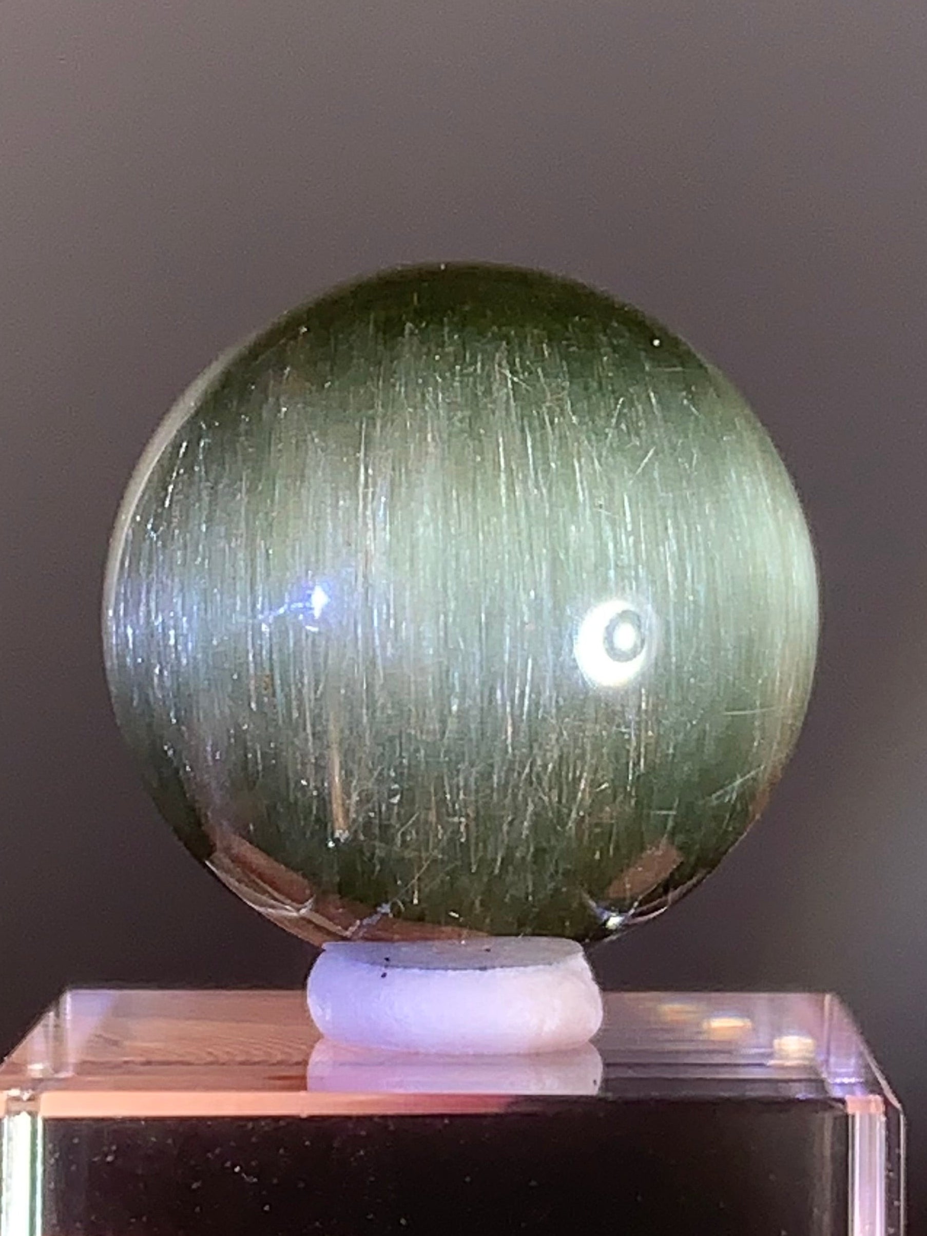 Collector’s Piece Extremely Rare Emerald Cat’s Eye Green Amphibole Sphere