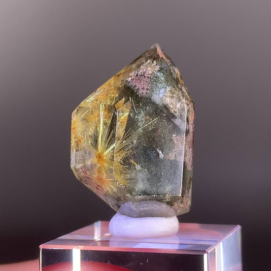 Collector’s Piece Scenic Gold Rutile with Green & Pink Garden Quartz from Brazil