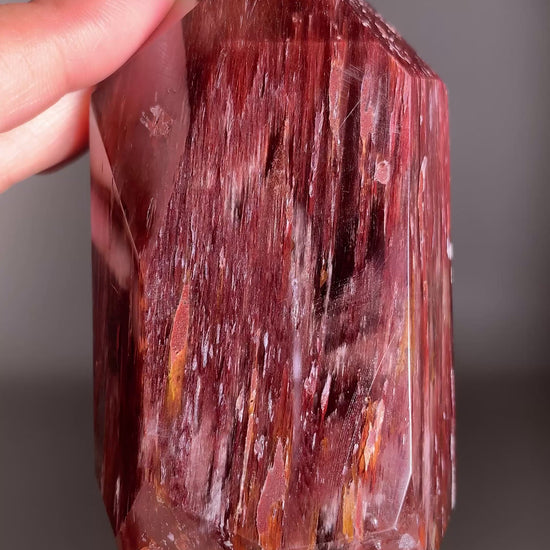 Dark Raspberry Pink Amphibole Polished Tower | Rare Collector’s Crystal from Brazil