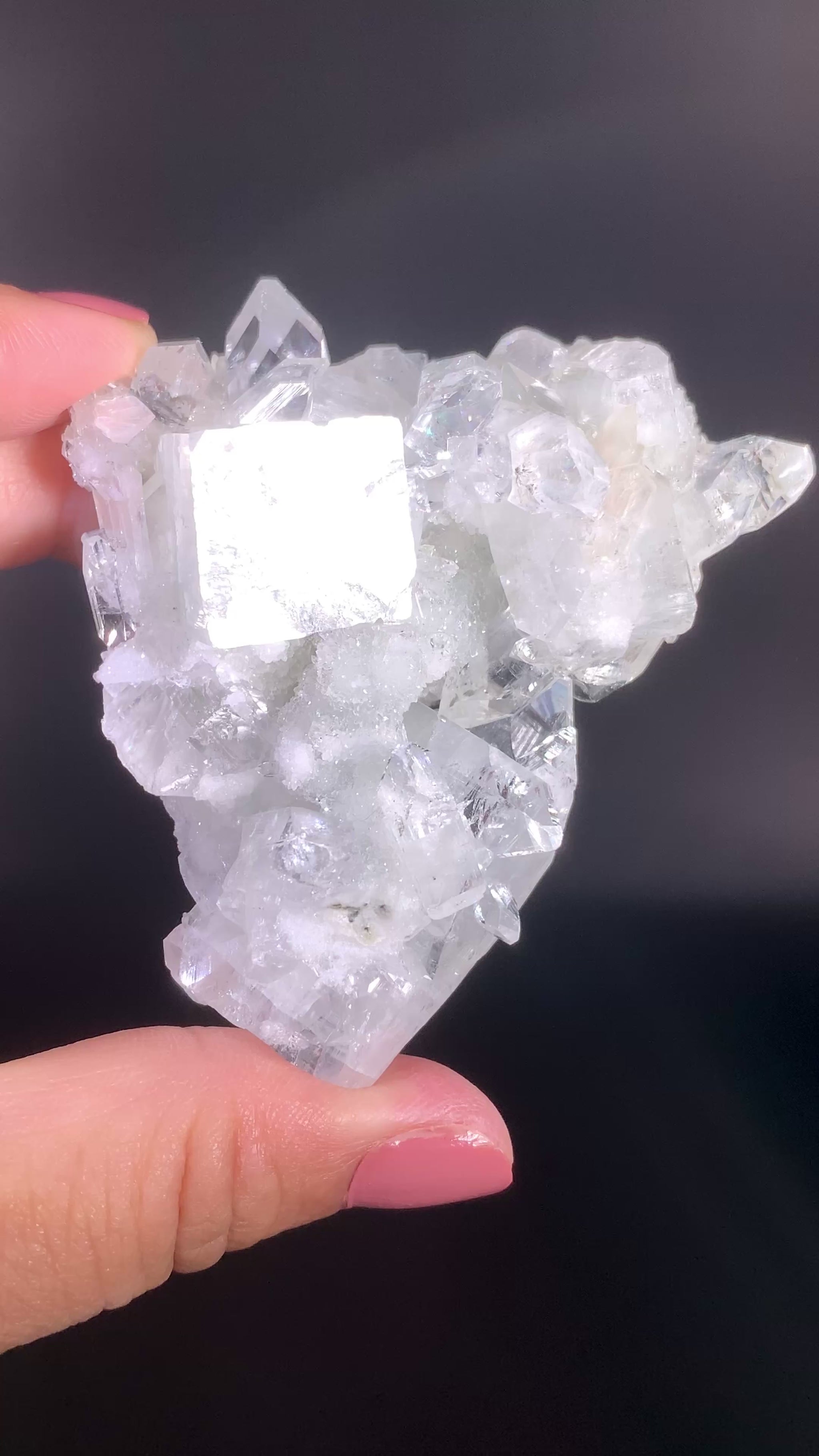 A radiant Diamond Apophyllite from the Himalaya, prized for its brilliant clarity, sparkling crystal faces, and exceptional natural beauty