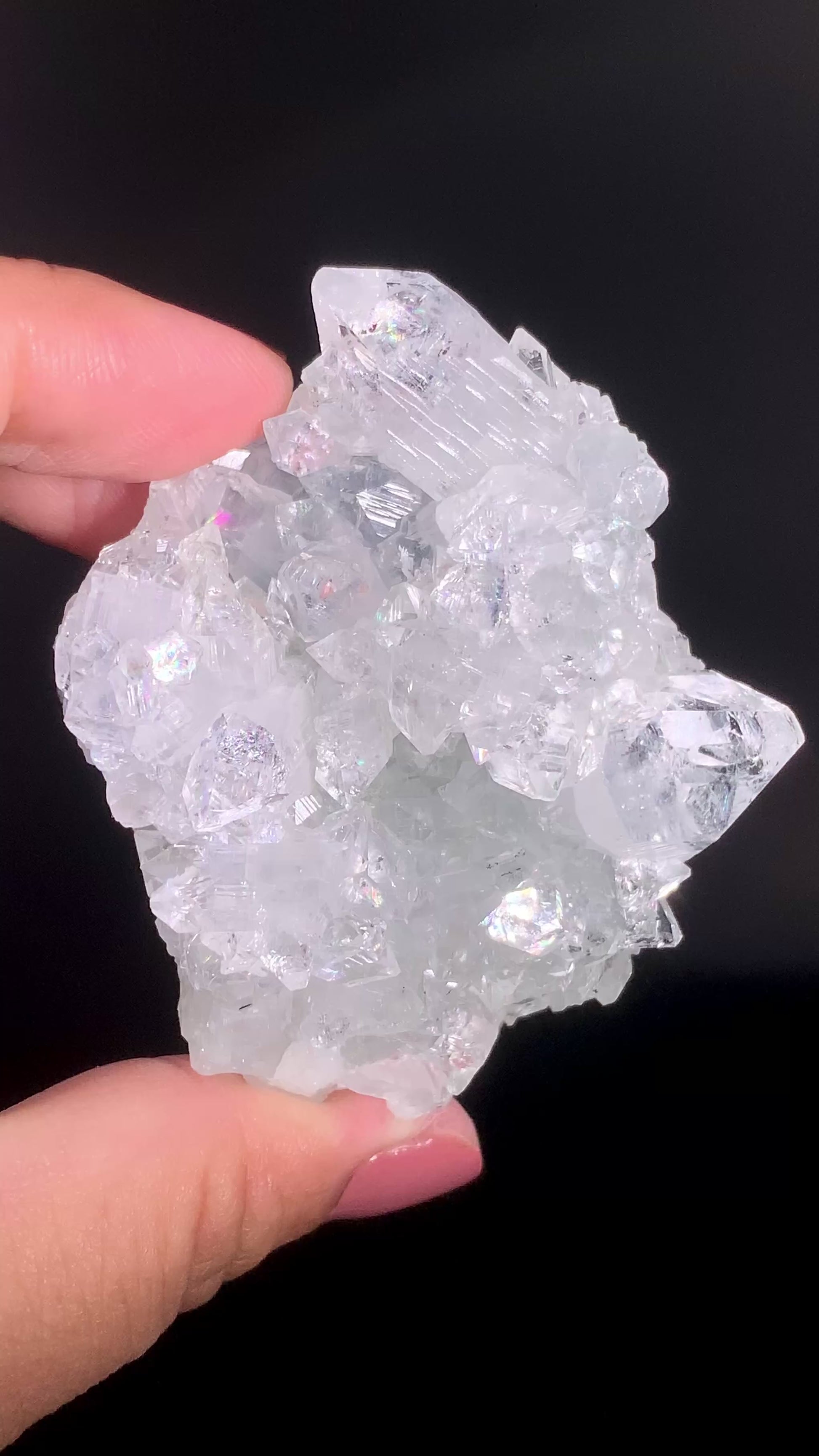 A radiant Diamond Apophyllite from the Himalaya, prized for its brilliant clarity, sparkling crystal faces, and exceptional natural beauty