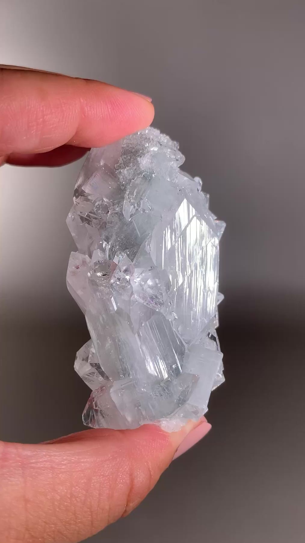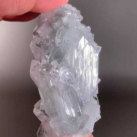 This specimen showcases brilliant Diamond Apophyllite crystals alongside sparkling Blue Chalcedony, forming a radiant and harmonious combination. The Apophyllite features sharp, glass-like points that reflect light with dazzling clarity, while the Blue Chalcedony shimmers with a subtle, glittering surface—adding an unexpected touch of magic to its usually soft and serene character. The interplay of crisp sparkle and soothing blue creates a piece that feels both vibrant and calming—a true standout for any crystal collection or sacred space.