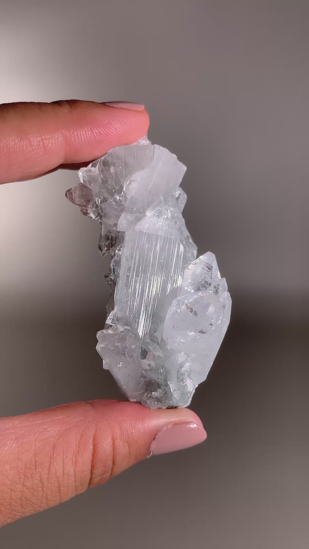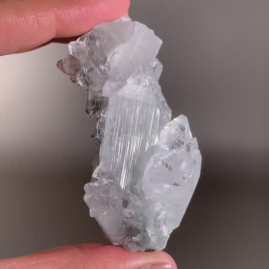 This specimen showcases brilliant Diamond Apophyllite crystals alongside sparkling Blue Chalcedony, forming a radiant and harmonious combination. The Apophyllite features sharp, glass-like points that reflect light with dazzling clarity, while the Blue Chalcedony shimmers with a subtle, glittering surface—adding an unexpected touch of magic to its usually soft and serene character. The interplay of crisp sparkle and soothing blue creates a piece that feels both vibrant and calming—a true standout for any crystal collection or sacred space.