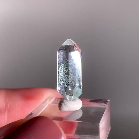 Double-Terminated, Polished Phantom Quartz with Rare Tiffany Blue Color from Madagascar