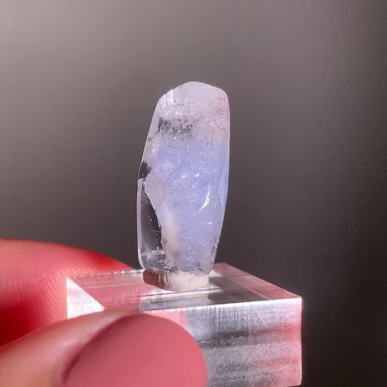 This Dumortierite polished freeform showcases rich indigo, denim-blue, and violet hues with subtle marbling from quartz and feldspar. Expertly hand-polished, each piece highlights natural swirling patterns and fibrous textures, making it a uniquely beautiful example of this captivating mineral.