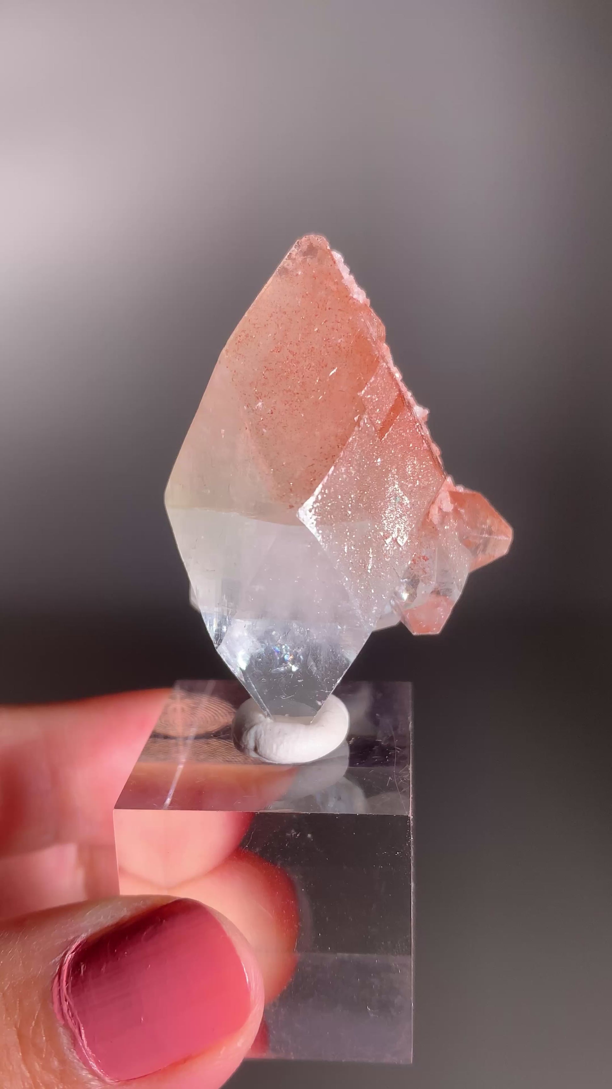 A rare Peachy Pink Apophyllite specimen from the Himalayas. Pink is the rarest color variety of Apophyllite, found only in limited pockets high in the mountains. This piece glows with delicate peach to blush tones, embodying both rarity and natural beauty—a true collector’s treasure from one of the world’s most exclusive crystal sources.