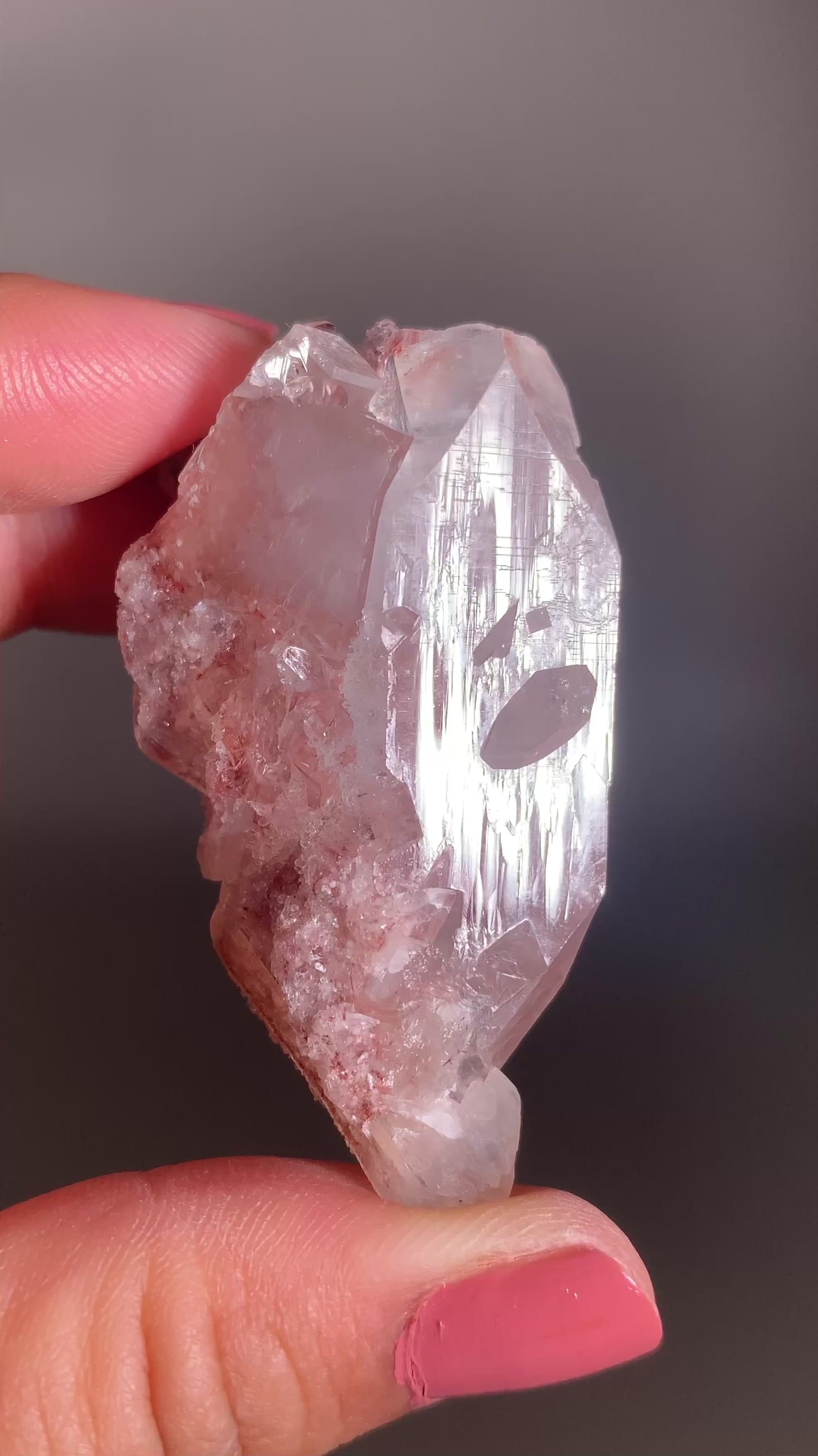 A rare Pink Apophyllite specimen from the Himalayas. Pink is the rarest color variety of Apophyllite, found only in limited pockets high in the mountains. This piece glows with delicate blush tones and sparkling clarity, embodying both rarity and natural beauty—a true collector’s treasure from one of the world’s most exclusive crystal sources.