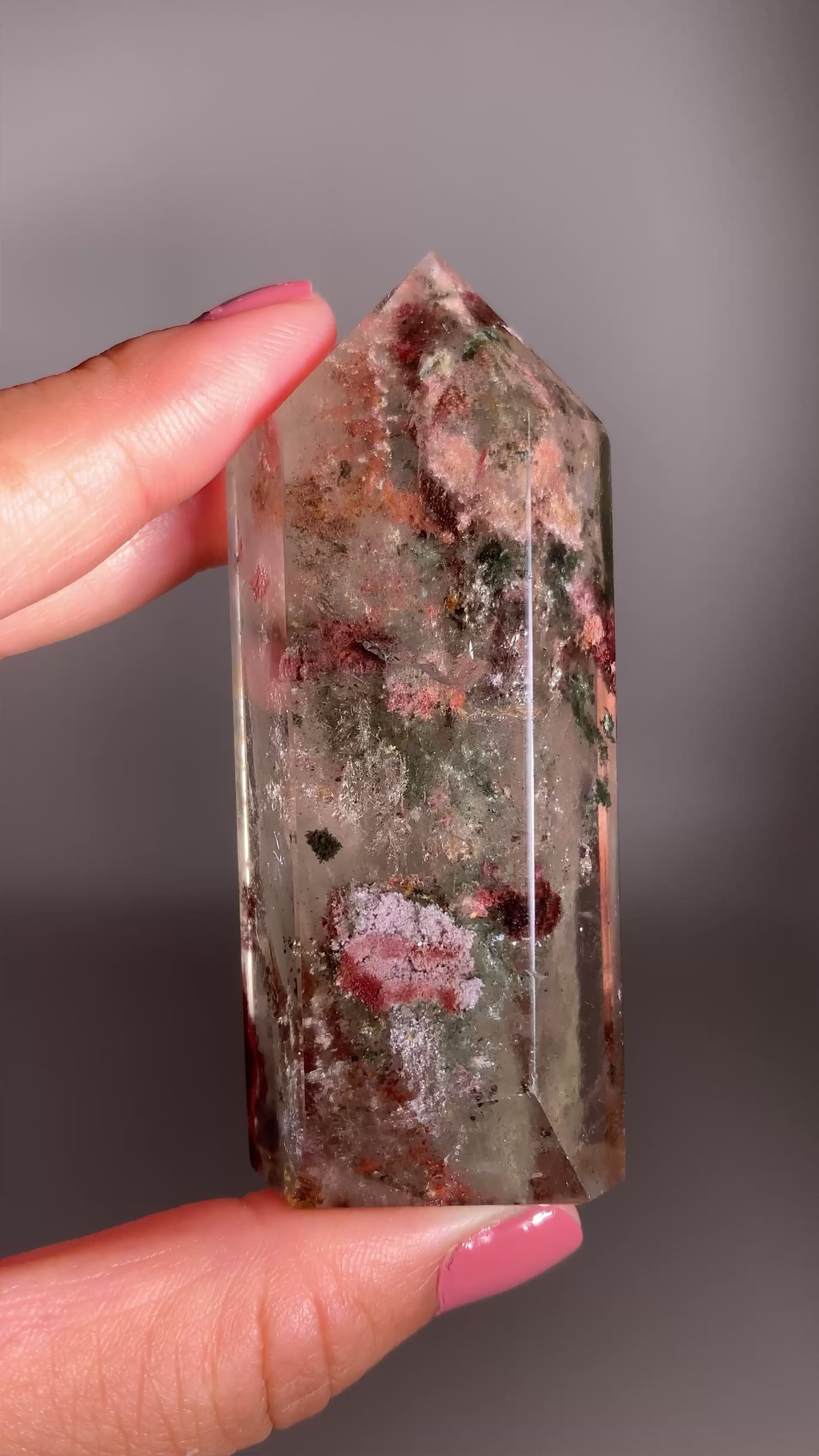 This Four Season Garden Quartz Tower from Zambia captures the beauty of nature in every layer, featuring a rich mix of mineral inclusions that resemble the changing colors of the seasons. Hand-polished to perfection, this tower radiates depth, harmony, and grounding energy—making it a stunning and rare addition to any crystal collection.