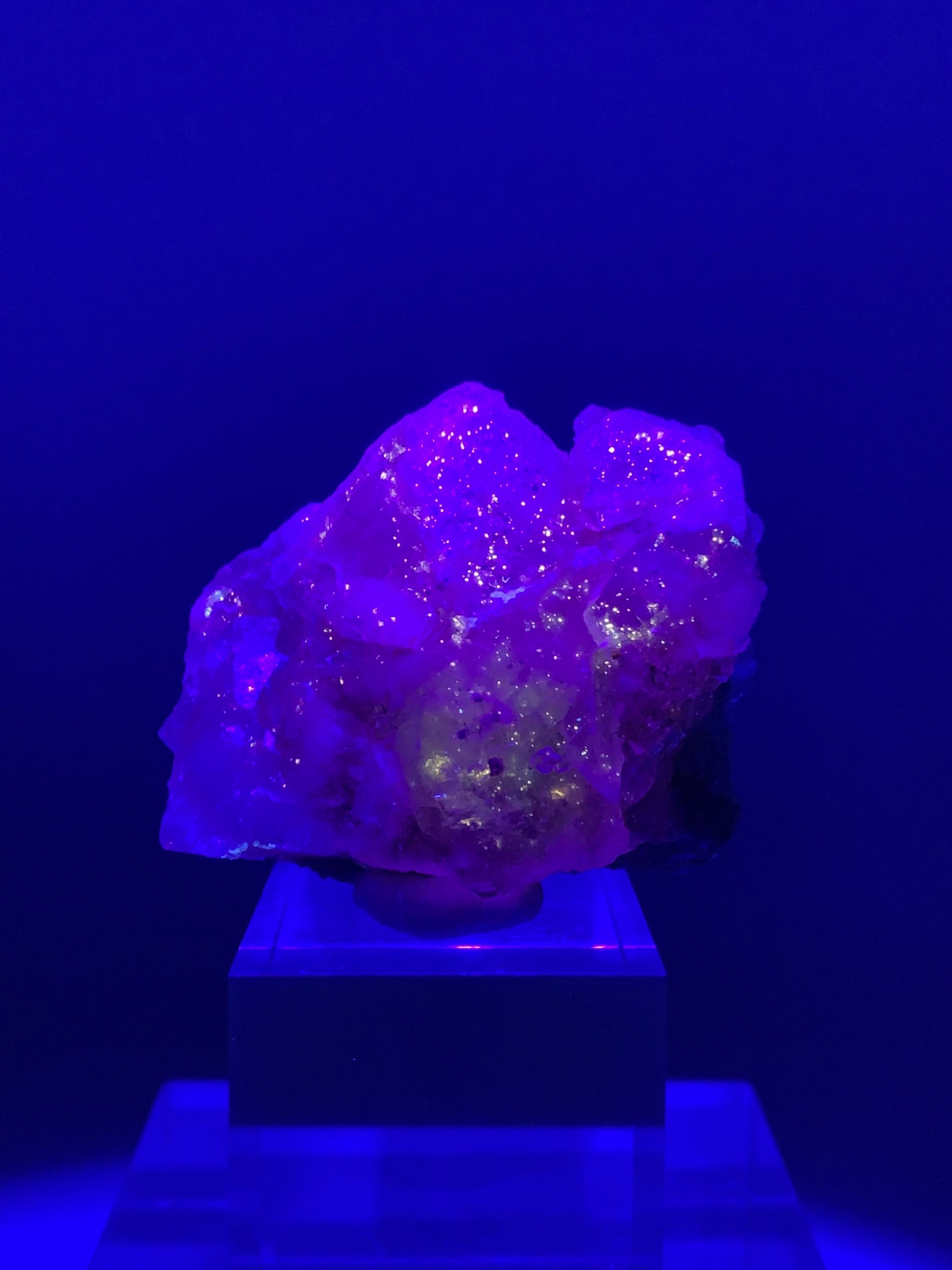 A rare and mesmerizing Galaxy Fluorite featuring vibrant color banding and natural petroleum inclusions that fluoresce under UV light — a true collector’s gem.
