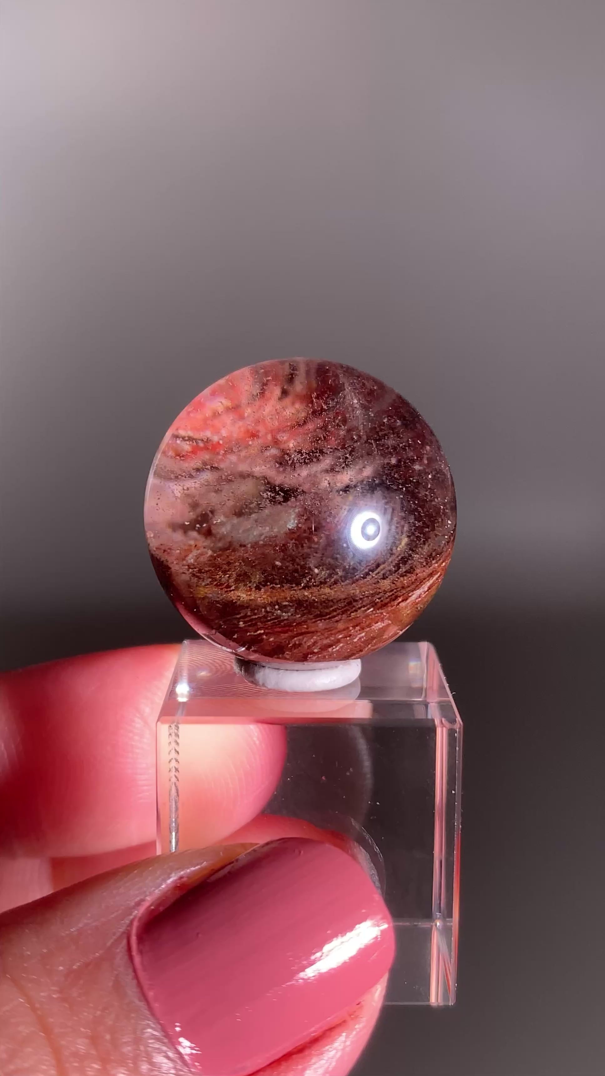 This Garden Quartz Sphere from Zambia showcases stunning internal landscapes with lush inclusions that create a miniature world within the crystal. Its clarity and natural patterns make it a captivating display piece and a must-have for collectors who appreciate the beauty and complexity of natural quartz.