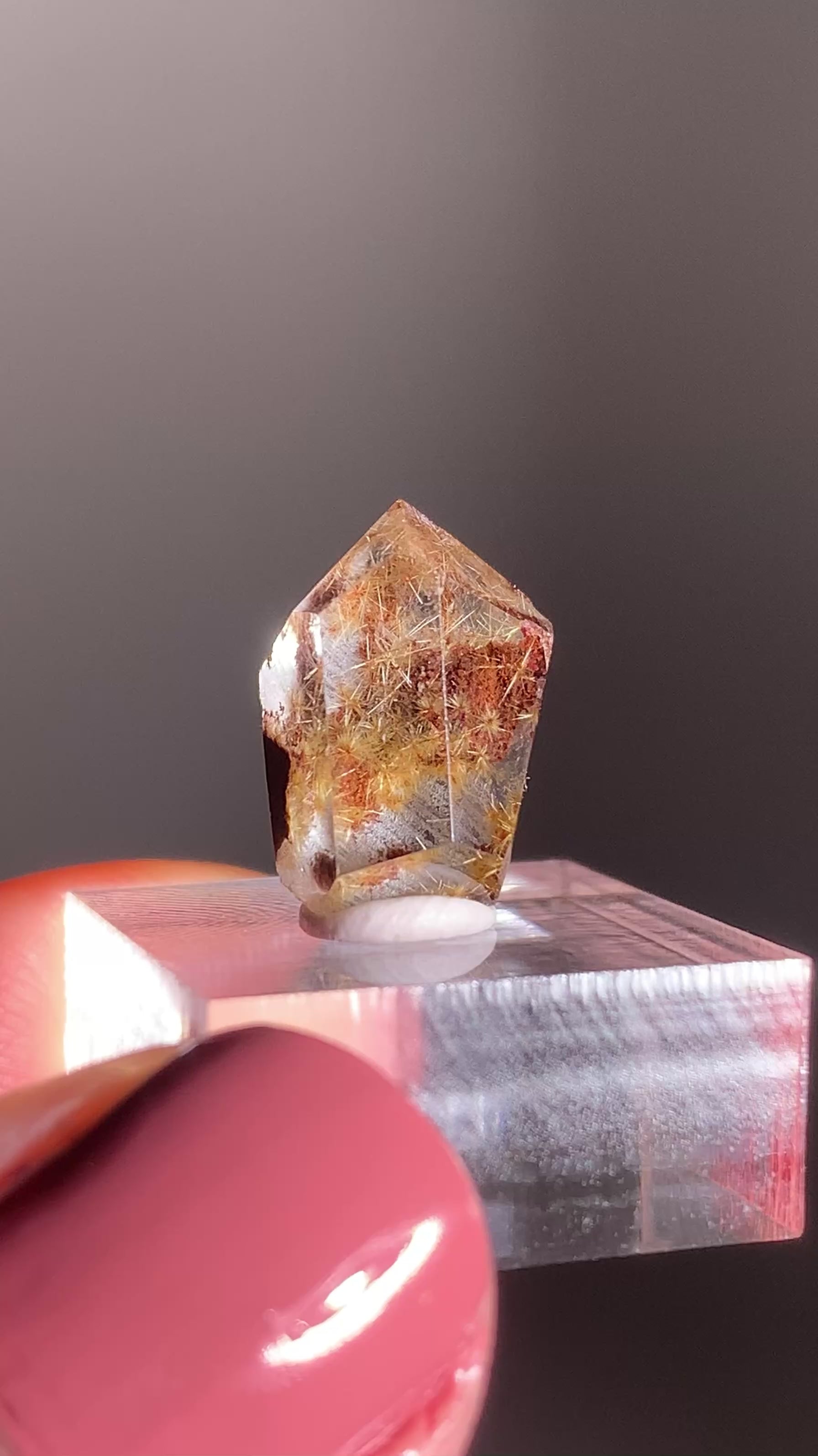 Gold Flower Rutile with Red Garden Inclusion Polished Freeform from Brazil – Rare Collector’s Crystal