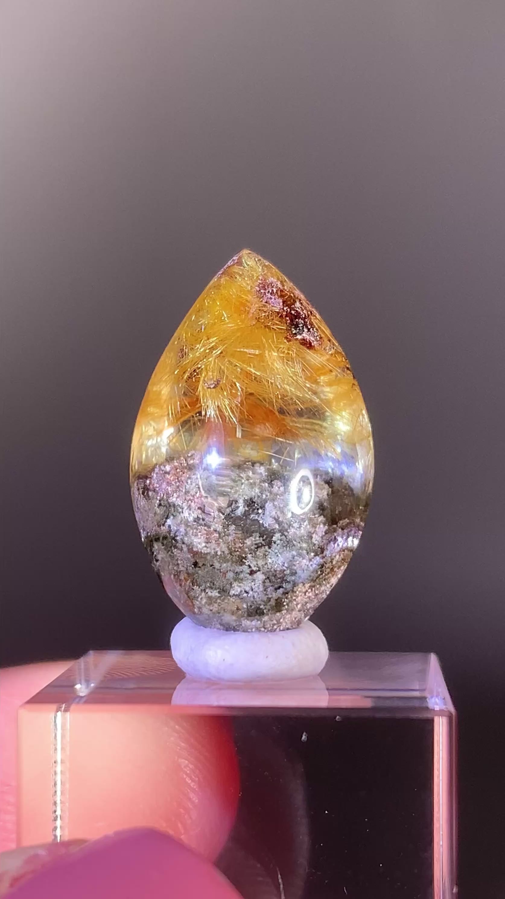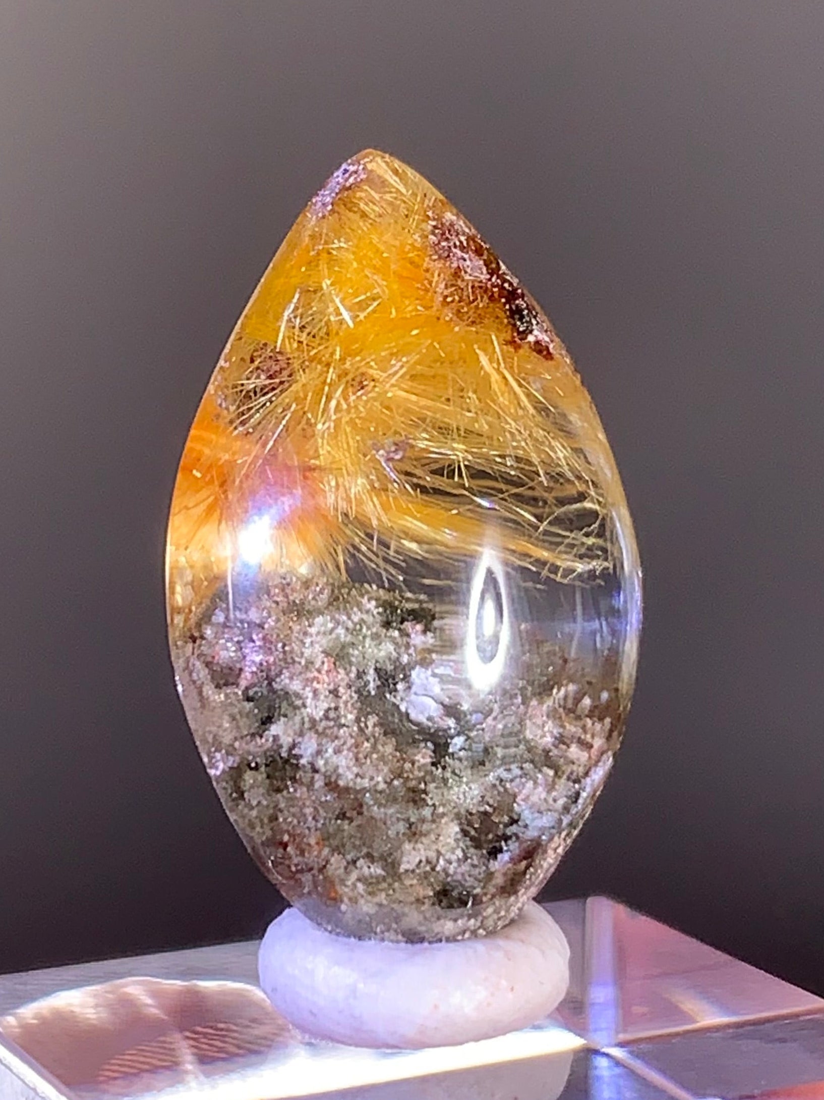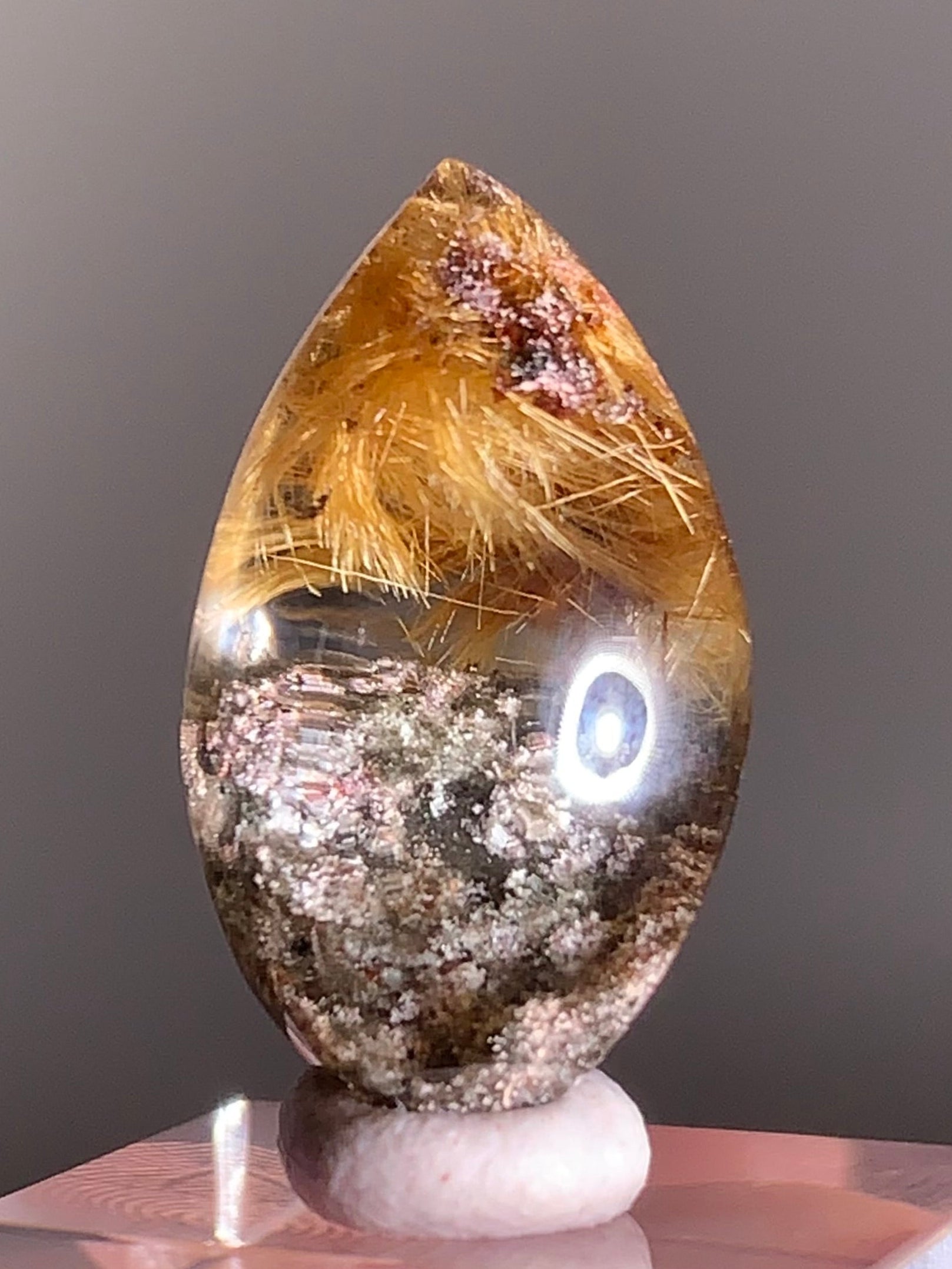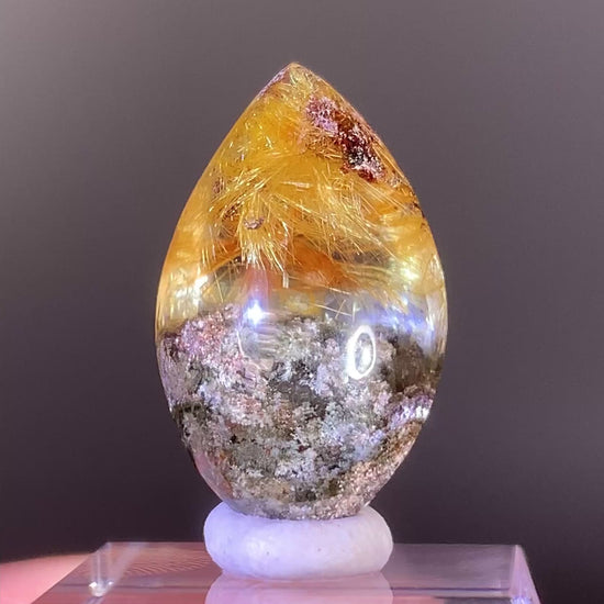 Gold Rutilated Quartz with Green and Pink Garden Inclusions | Polished Cabochon from Brazil