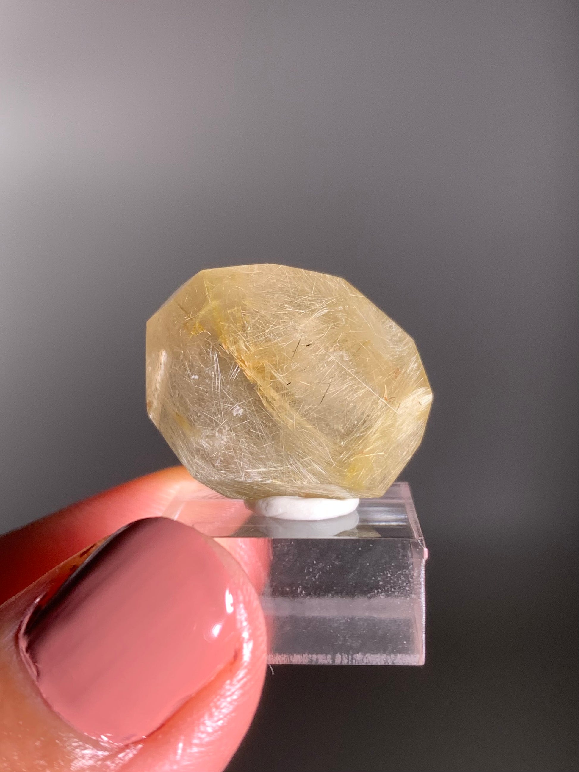 This mini polished freeform of Rutile Quartz features fine, golden threads suspended within clear quartz, creating a shimmering, light-filled effect. Compact yet full of character, it’s a perfect pocket-sized piece for everyday energy work, meditation, or as a subtle decorative accent.