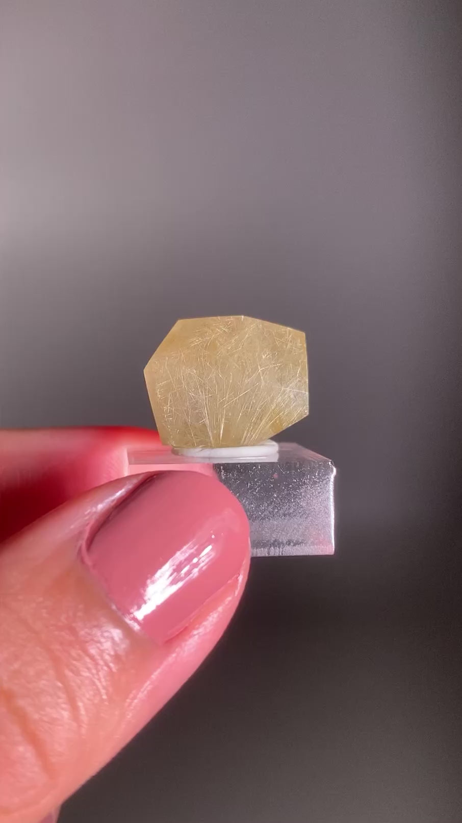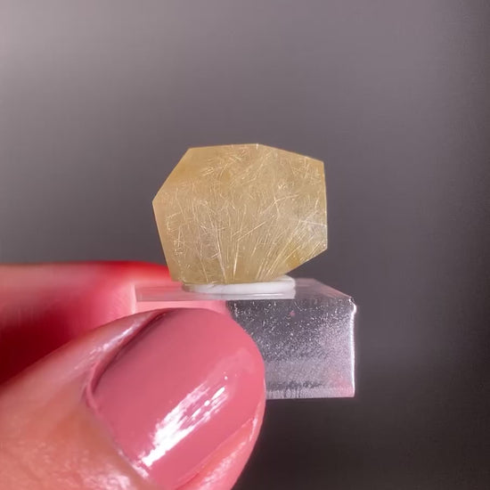 This mini polished freeform of Rutile Quartz features fine, golden threads suspended within clear quartz, creating a shimmering, light-filled effect. Compact yet full of character, it’s a perfect pocket-sized piece for everyday energy work, meditation, or as a subtle decorative accent.