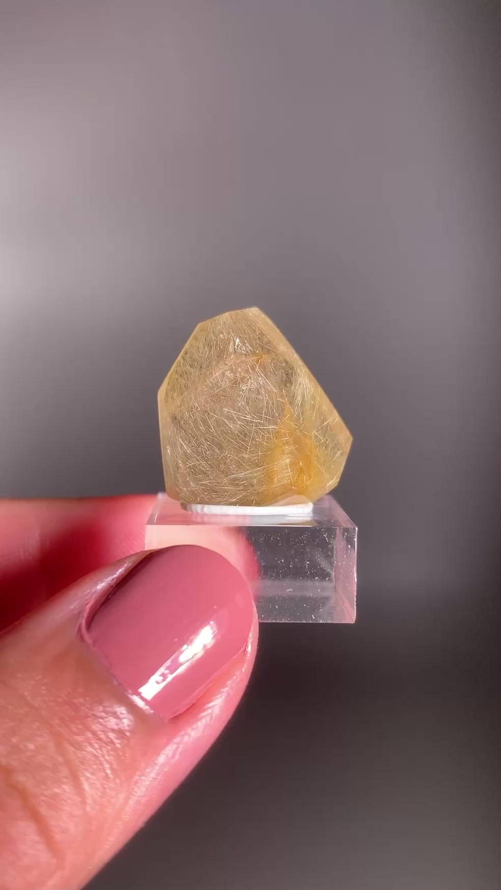 This mini polished freeform of Rutile Quartz features fine, golden threads suspended within clear quartz, creating a shimmering, light-filled effect. Compact yet full of character, it’s a perfect pocket-sized piece for everyday energy work, meditation, or as a subtle decorative accent.