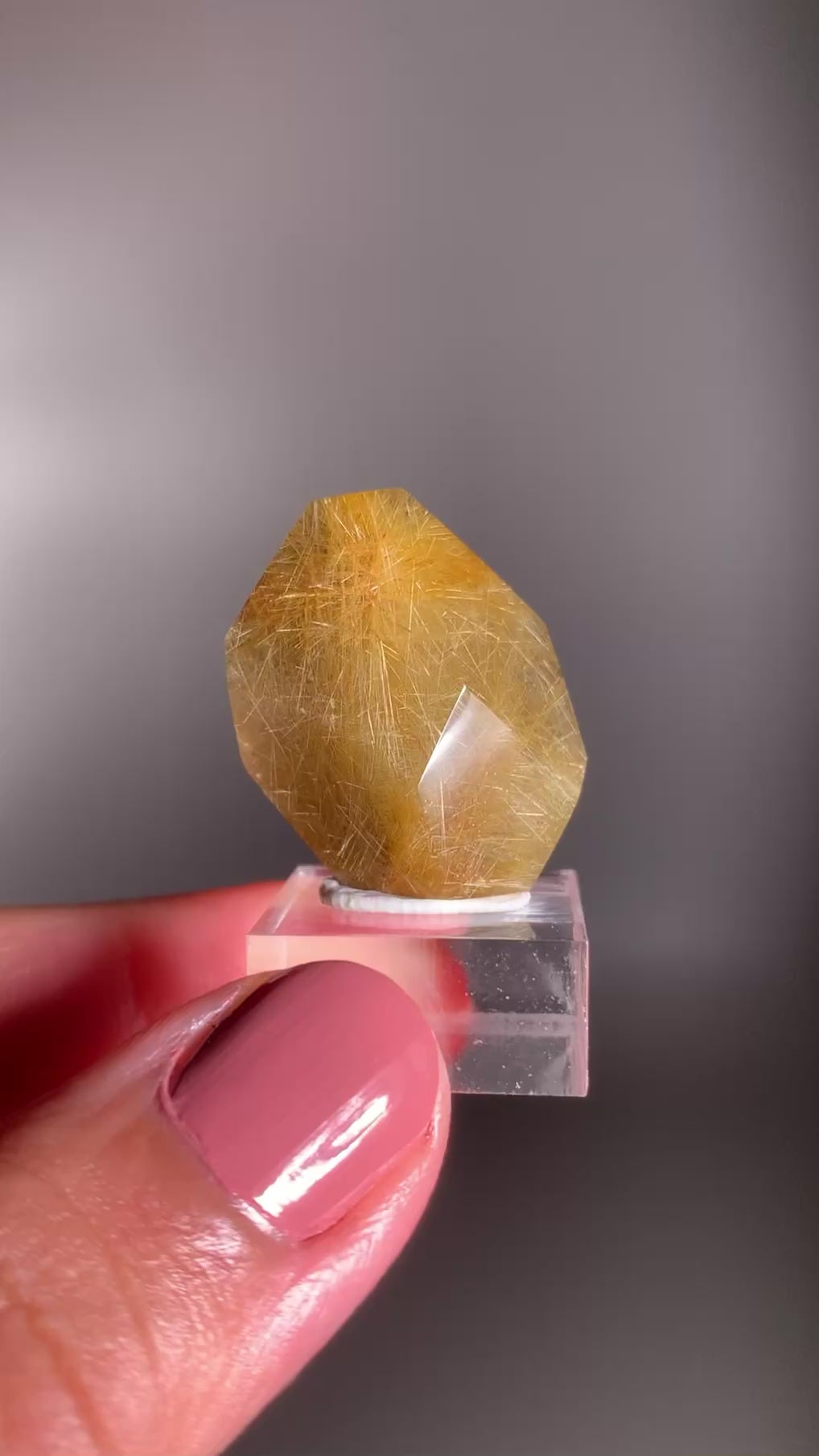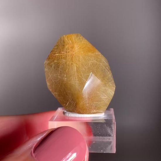 This mini polished freeform of Rutile Quartz features fine, golden threads suspended within clear quartz, creating a shimmering, light-filled effect. Compact yet full of character, it’s a perfect pocket-sized piece for everyday energy work, meditation, or as a subtle decorative accent.
