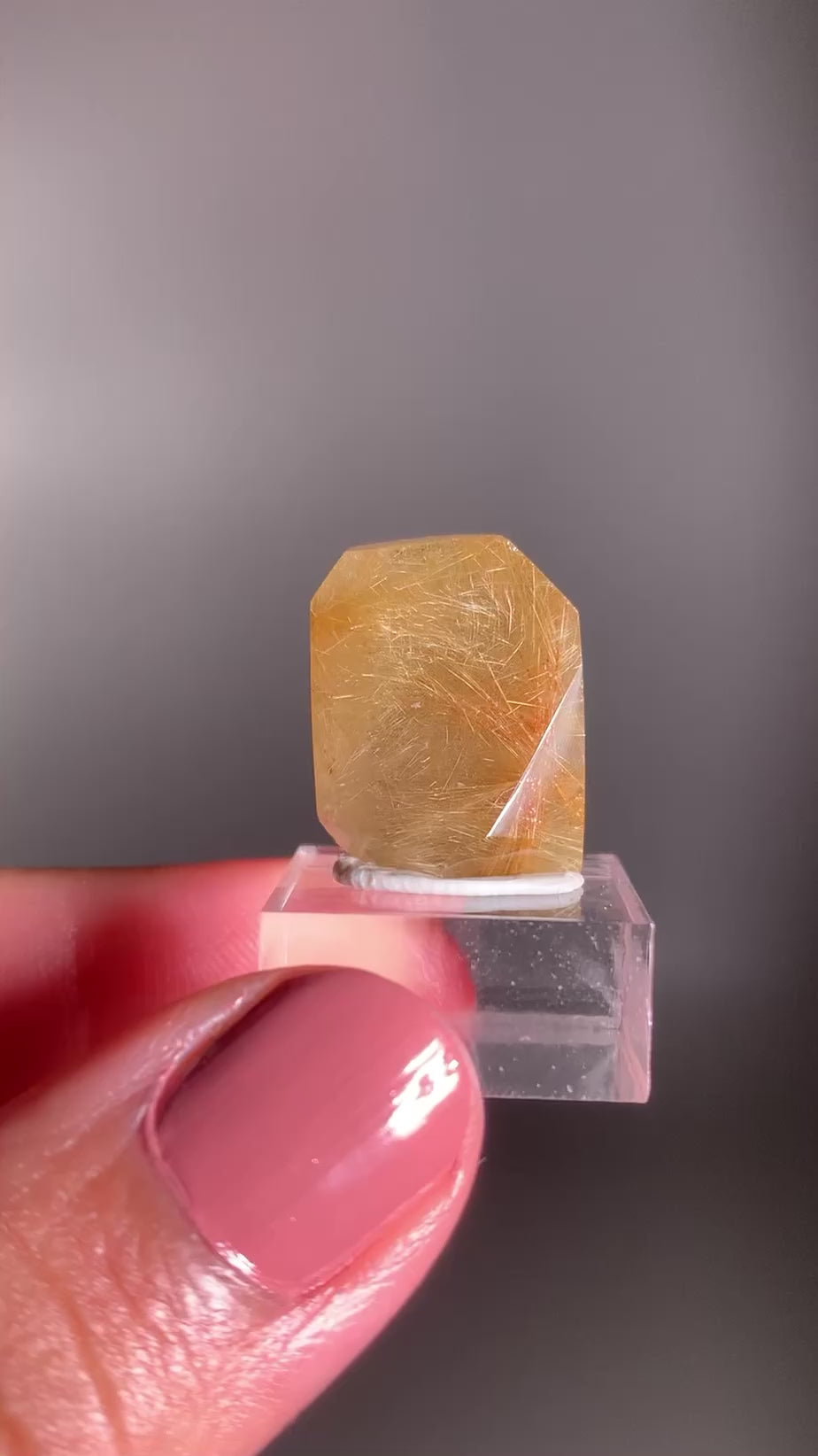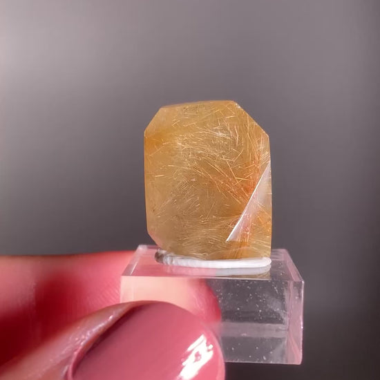 This mini polished freeform of Rutile Quartz features fine, golden threads suspended within clear quartz, creating a shimmering, light-filled effect. Compact yet full of character, it’s a perfect pocket-sized piece for everyday energy work, meditation, or as a subtle decorative accent.