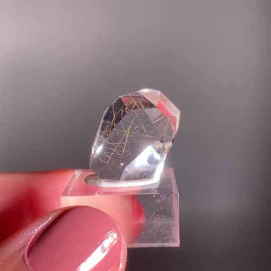 This mini polished freeform of Rutile Quartz features fine, golden threads suspended within clear quartz, creating a shimmering, light-filled effect. Compact yet full of character, it’s a perfect pocket-sized piece for everyday energy work, meditation, or as a subtle decorative accent.