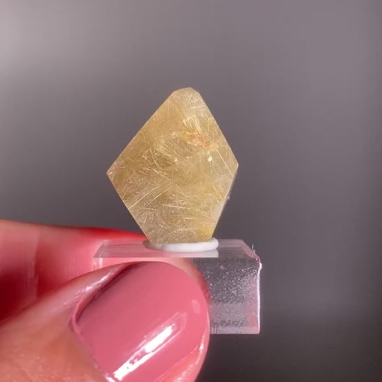 This mini polished freeform of Rutile Quartz features fine, golden threads suspended within clear quartz, creating a shimmering, light-filled effect. Compact yet full of character, it’s a perfect pocket-sized piece for everyday energy work, meditation, or as a subtle decorative accent.