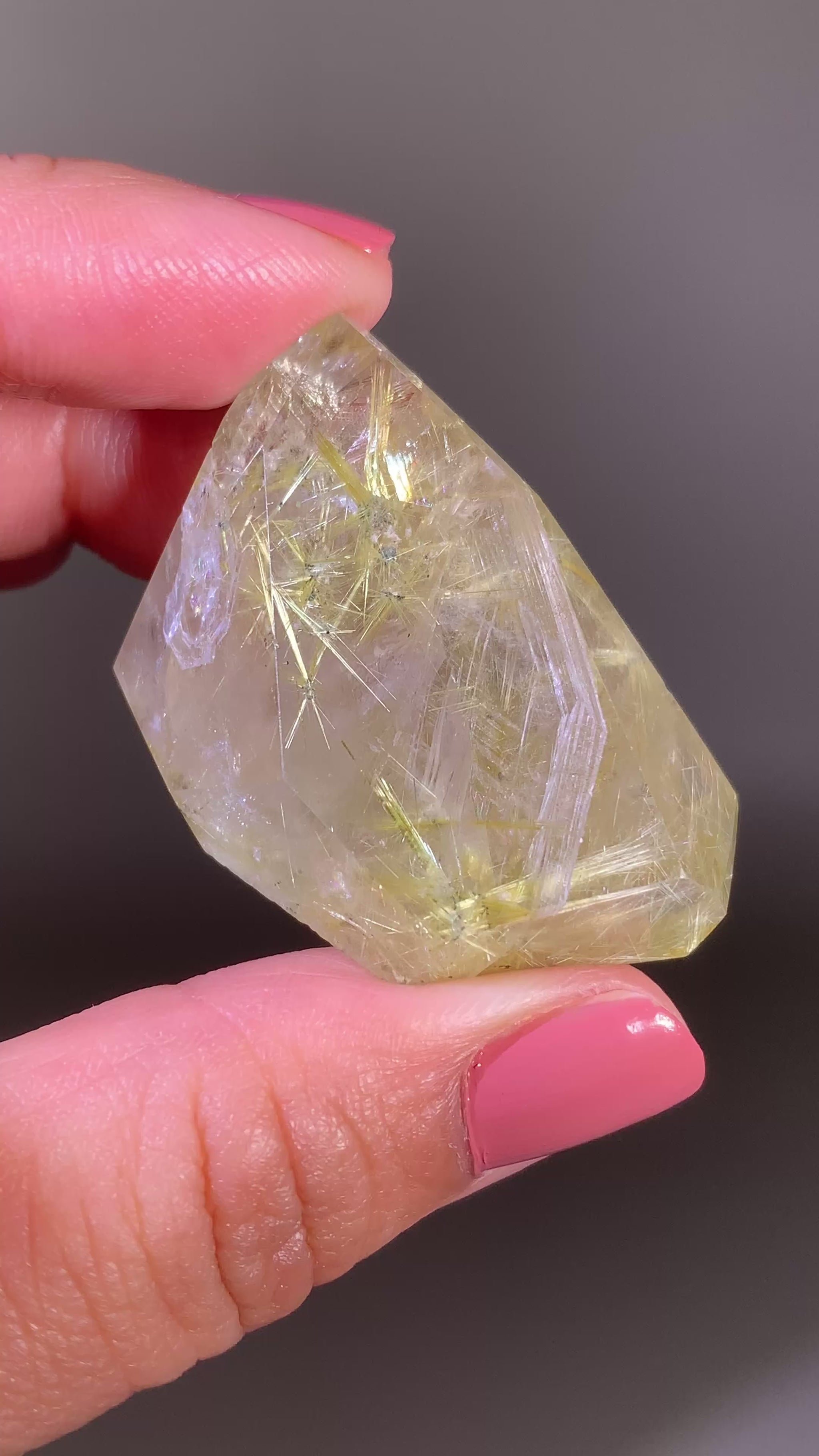 Golden Starburst Rutile with Hematite in Quartz