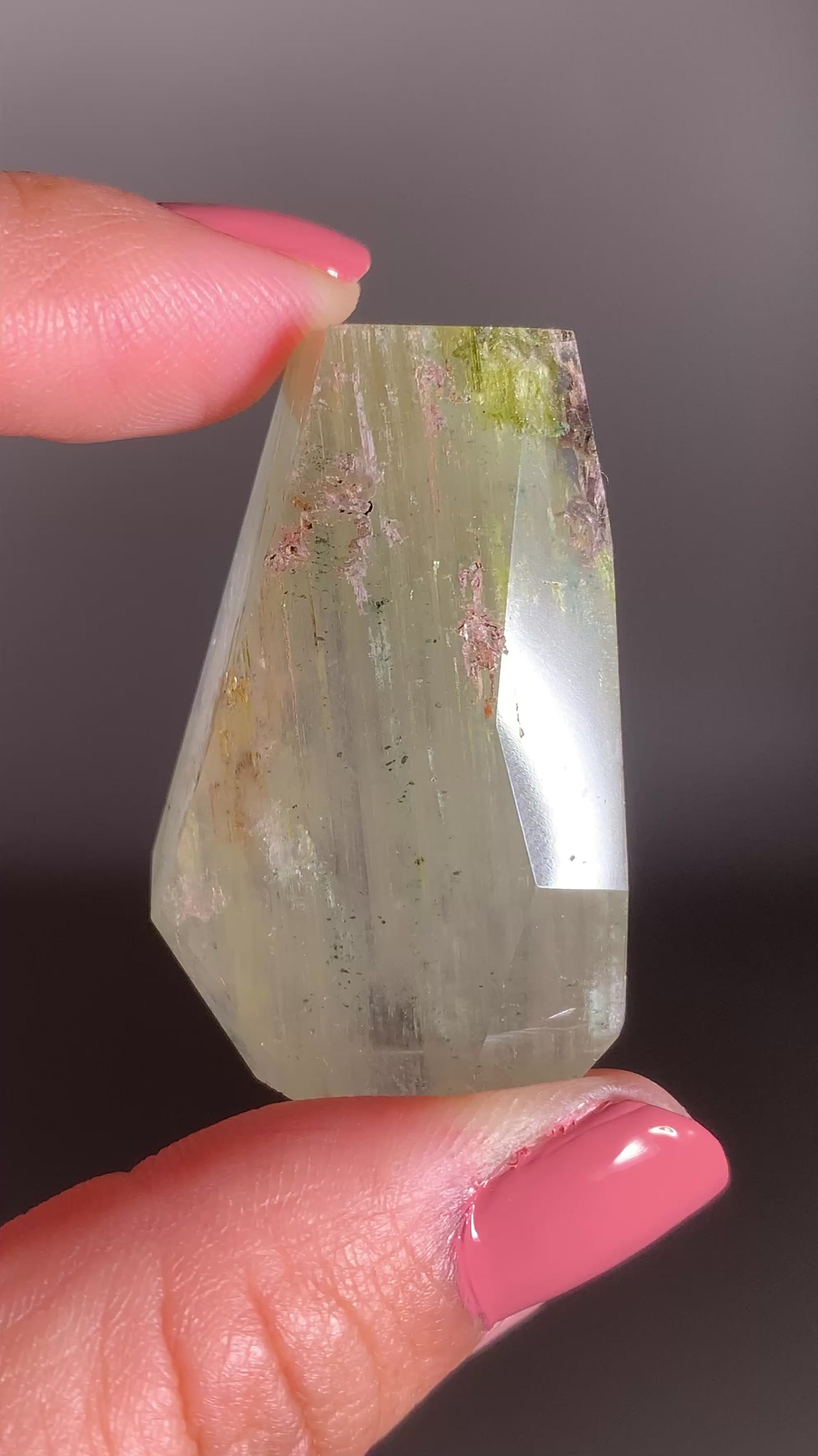 This Green Amphibole Garden Quartz from Zambia features lush green Epidote and sparkling Tourmaline inclusions, creating a vibrant internal landscape. The combination of textures and colors forms a miniature garden within the crystal. A captivating collector’s piece with exceptional clarity, depth, and visual interest.