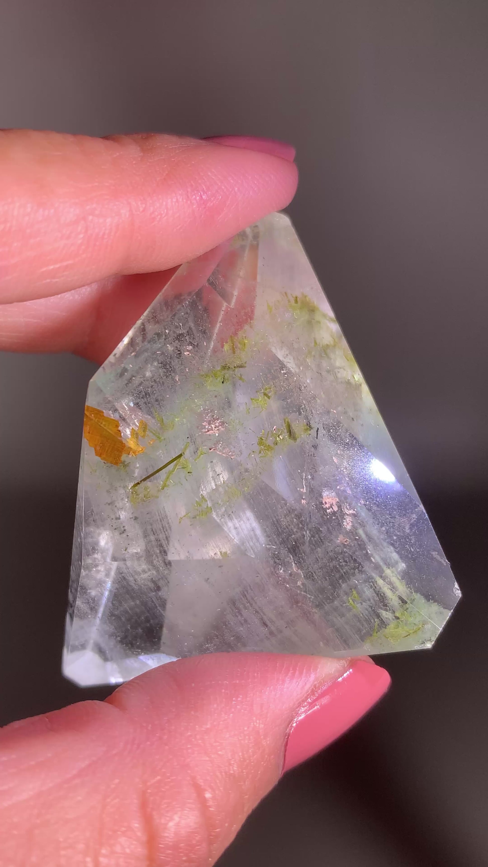 This Green Amphibole Garden Quartz from Zambia features lush green Epidote and sparkling Tourmaline inclusions, creating a vibrant internal landscape. The combination of textures and colors forms a miniature garden within the crystal. A captivating collector’s piece with exceptional clarity, depth, and visual interest.