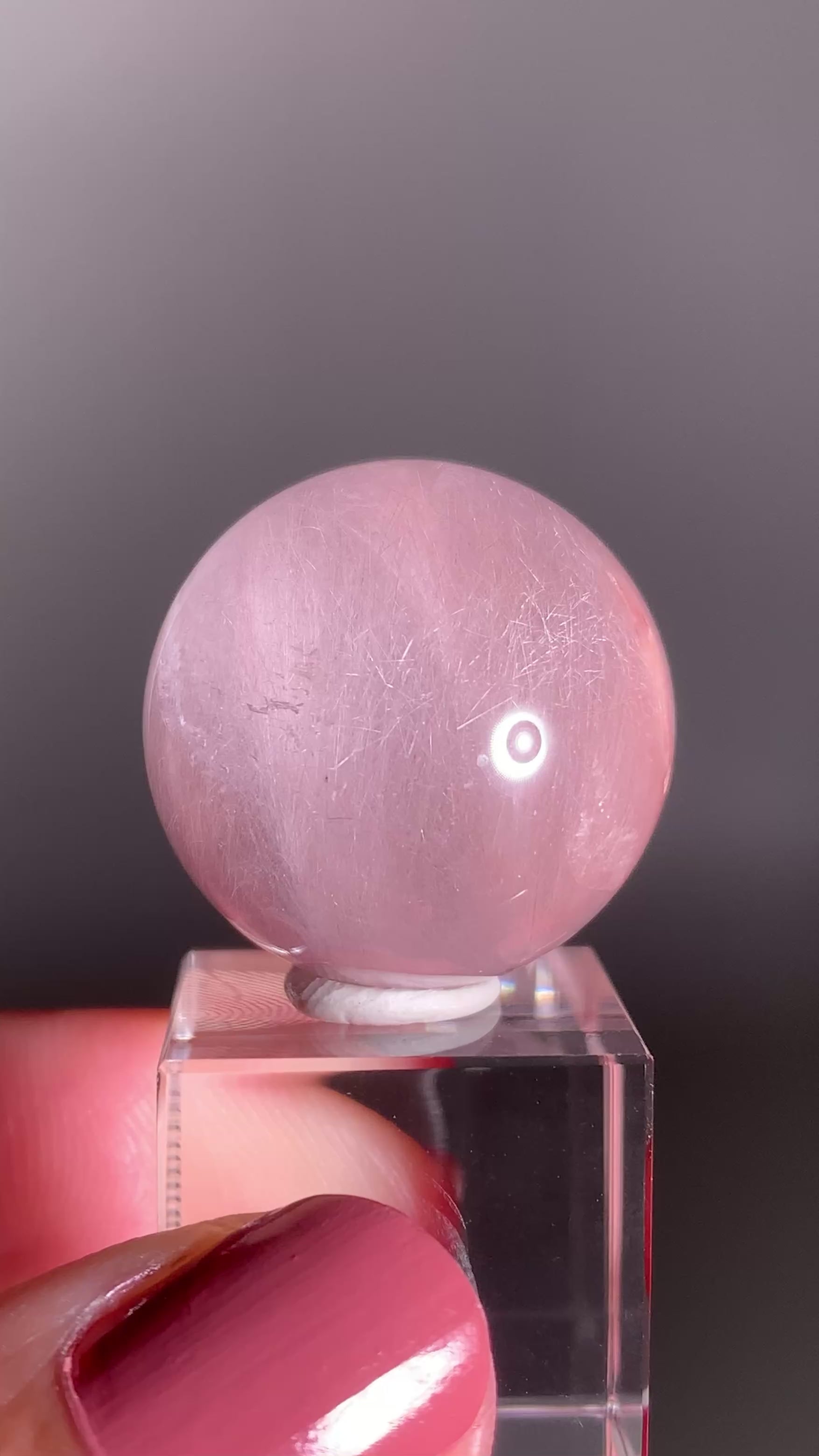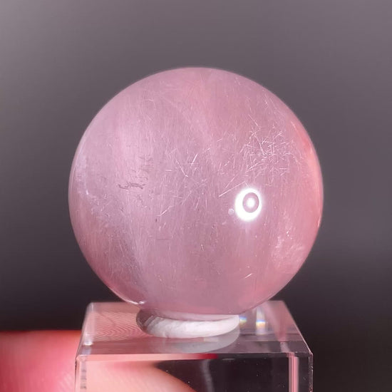 High-Clarity Pink Amphibole Sphere with Silky Textured Inclusions