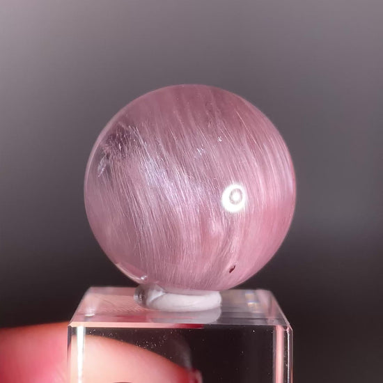 High-Clarity Pinkish Purple Amphibole Sphere with Silky Textured Inclusions