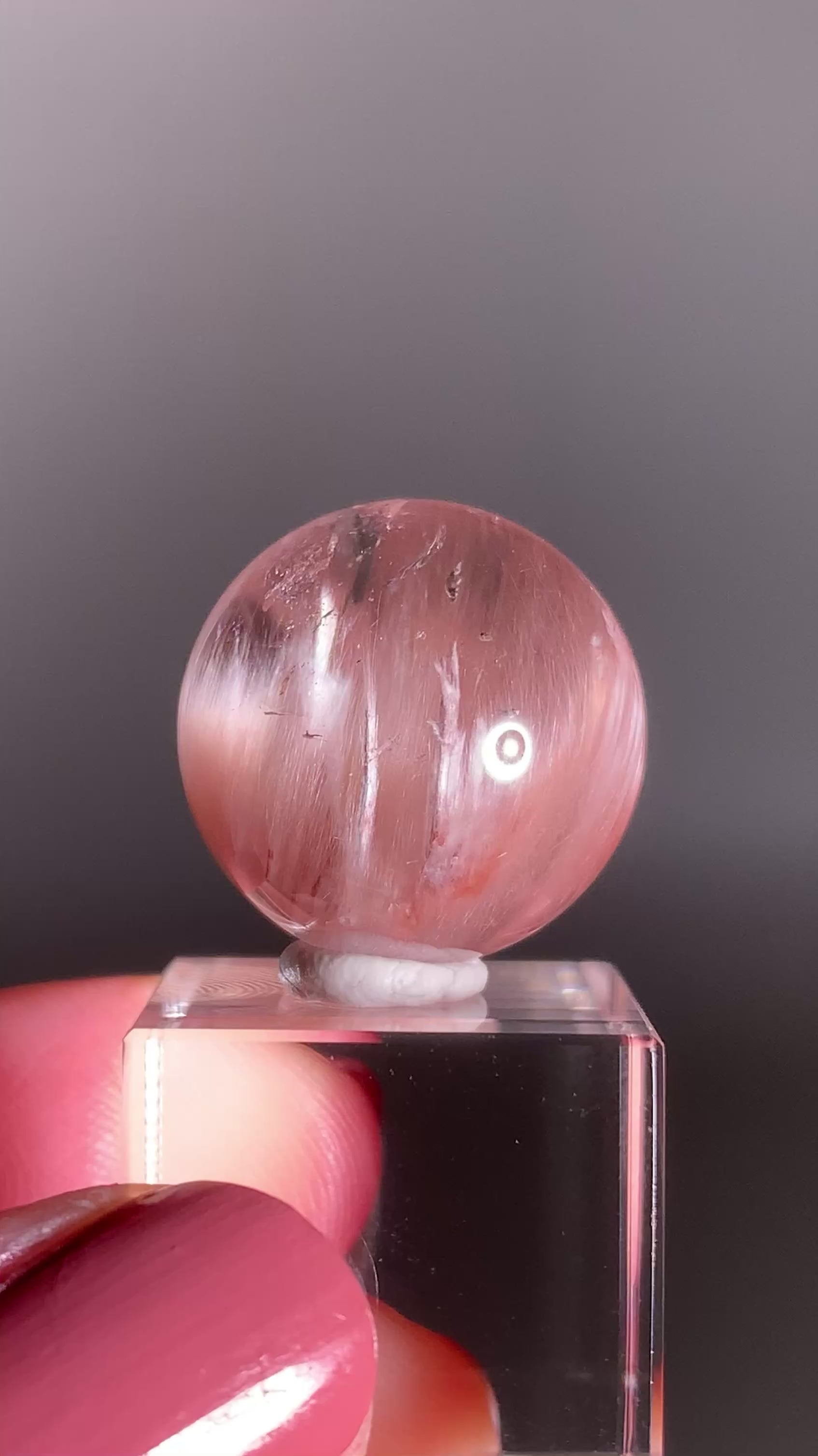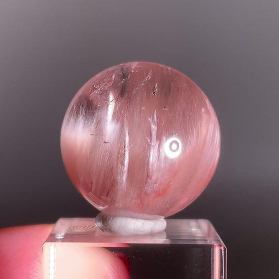 High-Clarity Pink Amphibole Sphere with Silky Textured Inclusions