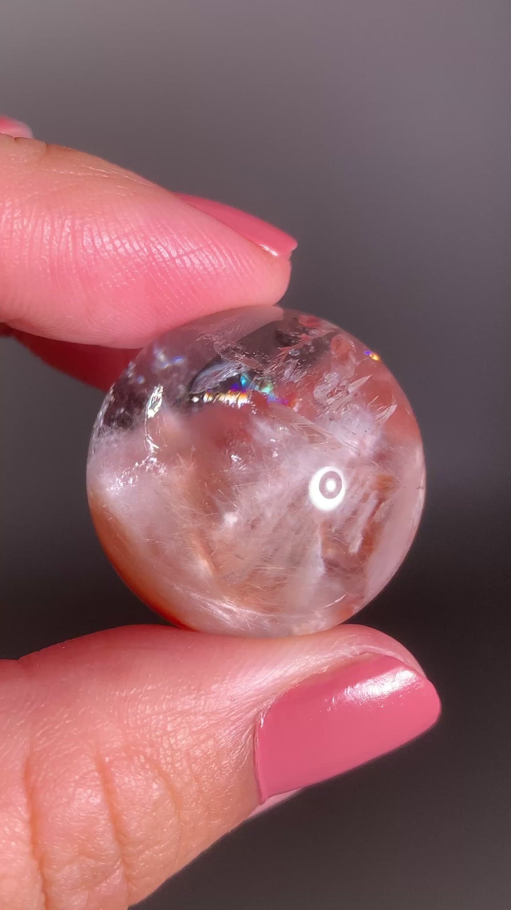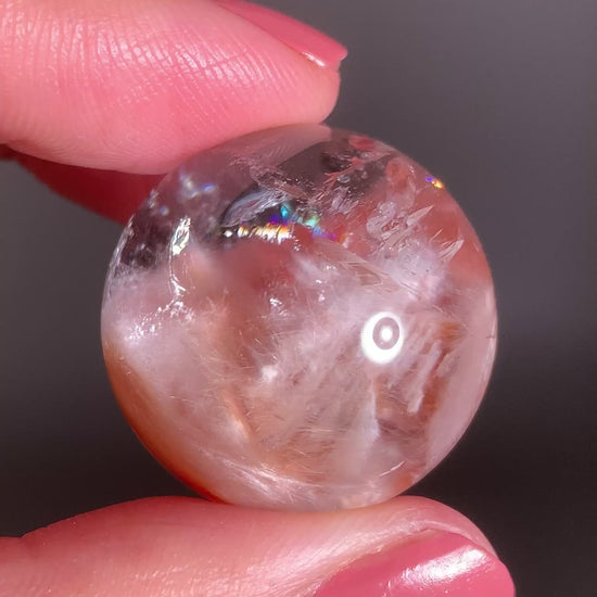 High-Clarity Pink Amphibole Sphere with Silky Textured Inclusions