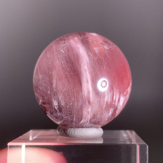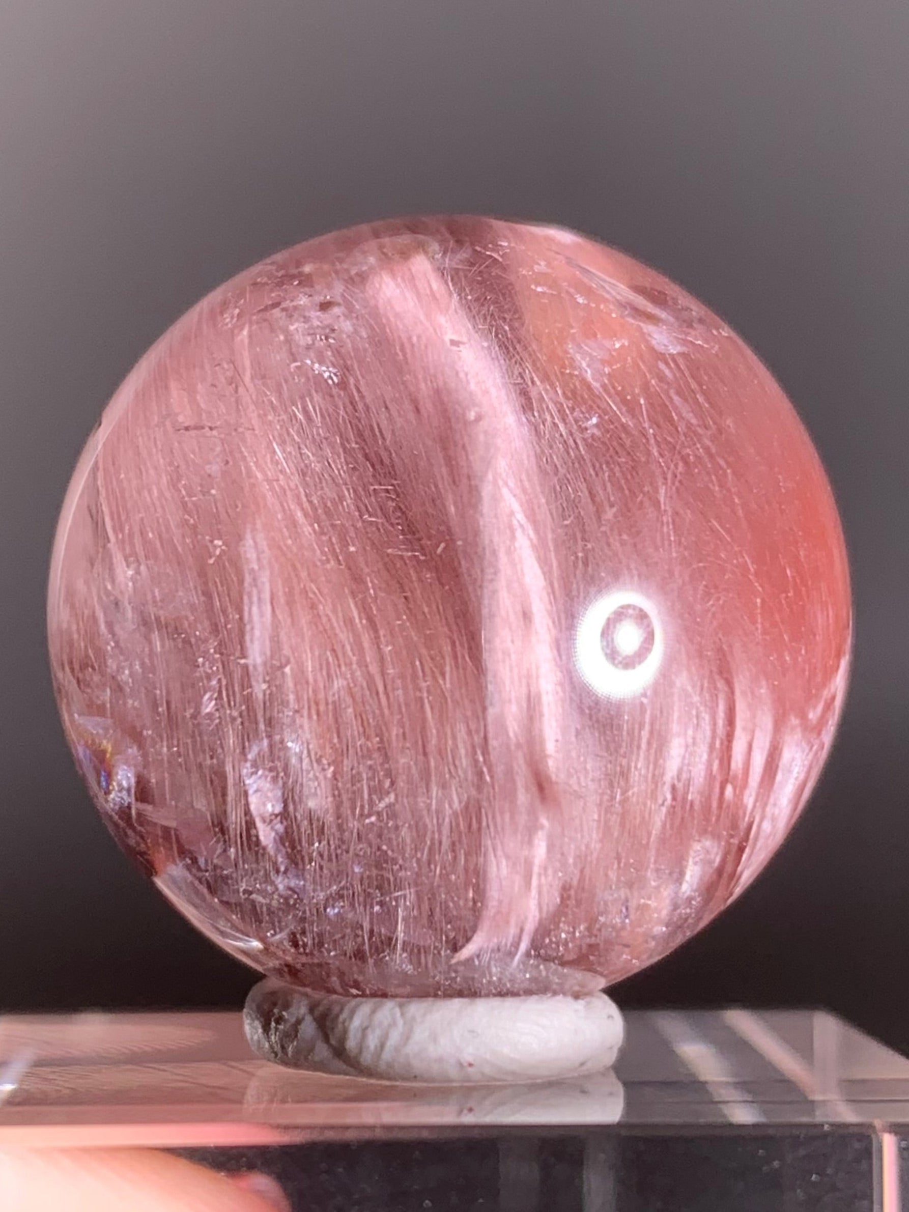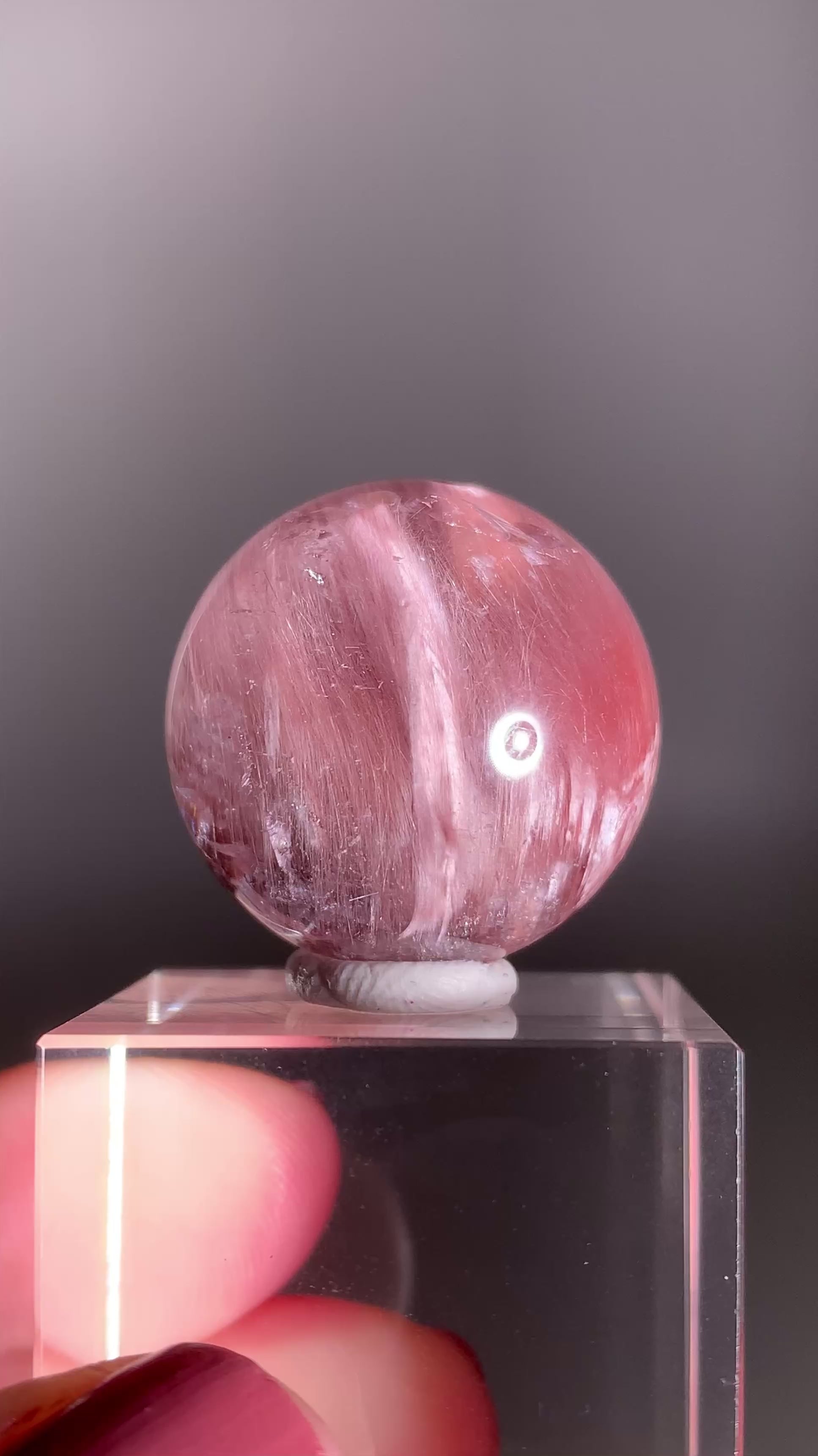 High-Clarity Pink Amphibole Sphere with Silky Textured Inclusions