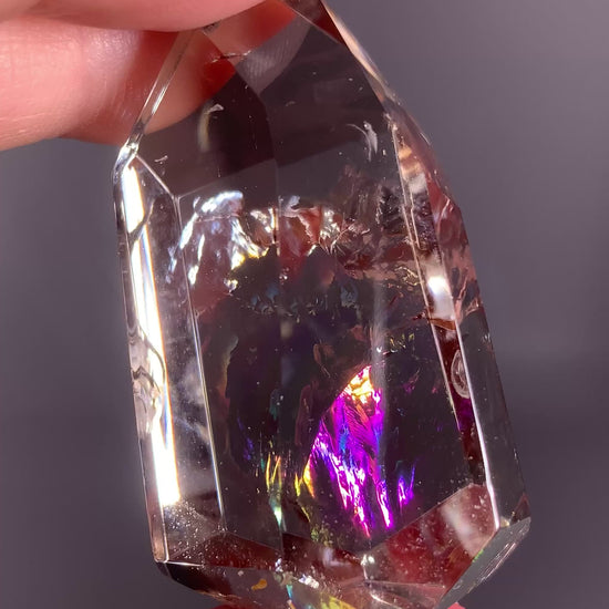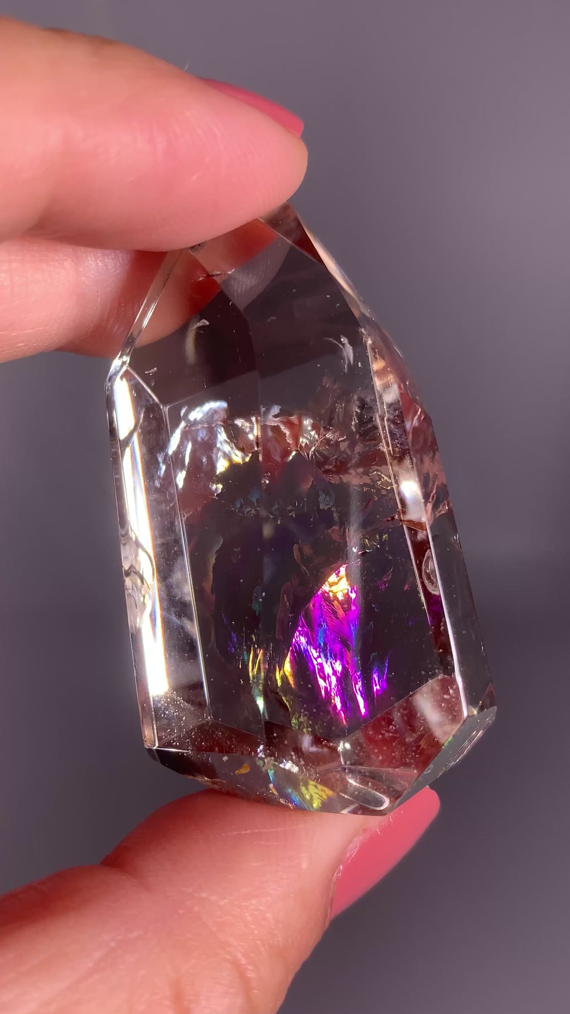 High-Quality Clear Quartz Polished Tower from Brazil with Natural Rainbows