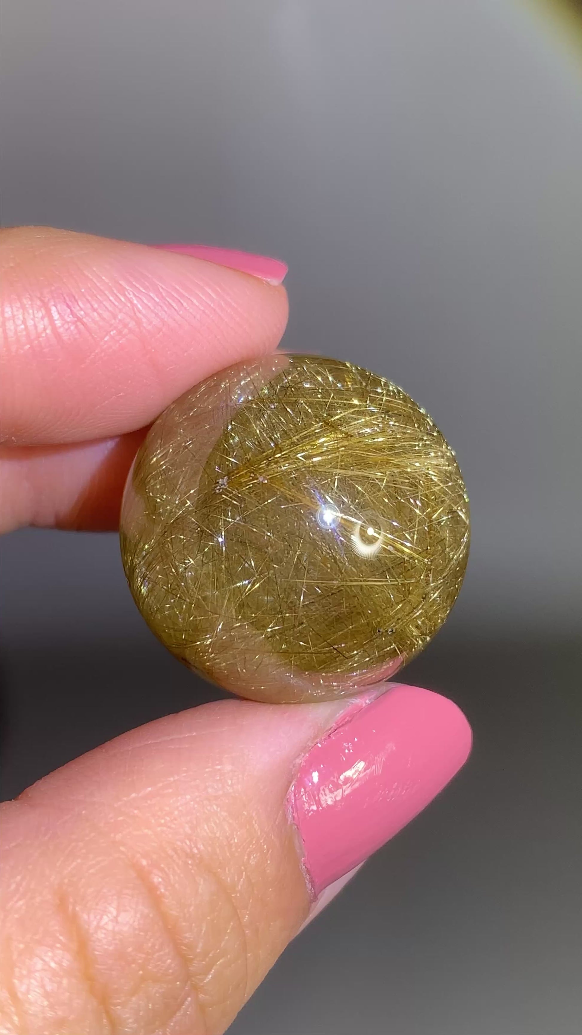 High-quality gold shooting star & lattice rutile sphere from Brazil. Densely packed rutile inclusions create bright, meteor-like patterns inside clear quartz. A rare collector’s piece with stunning natural shimmer and depth.