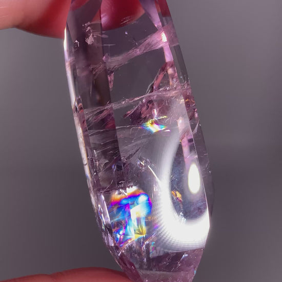 High-quality amethyst freeform from Brazil featuring excellent clarity and a natural rainbow. A polished natural crystal perfect for collectors, display, or gifting.