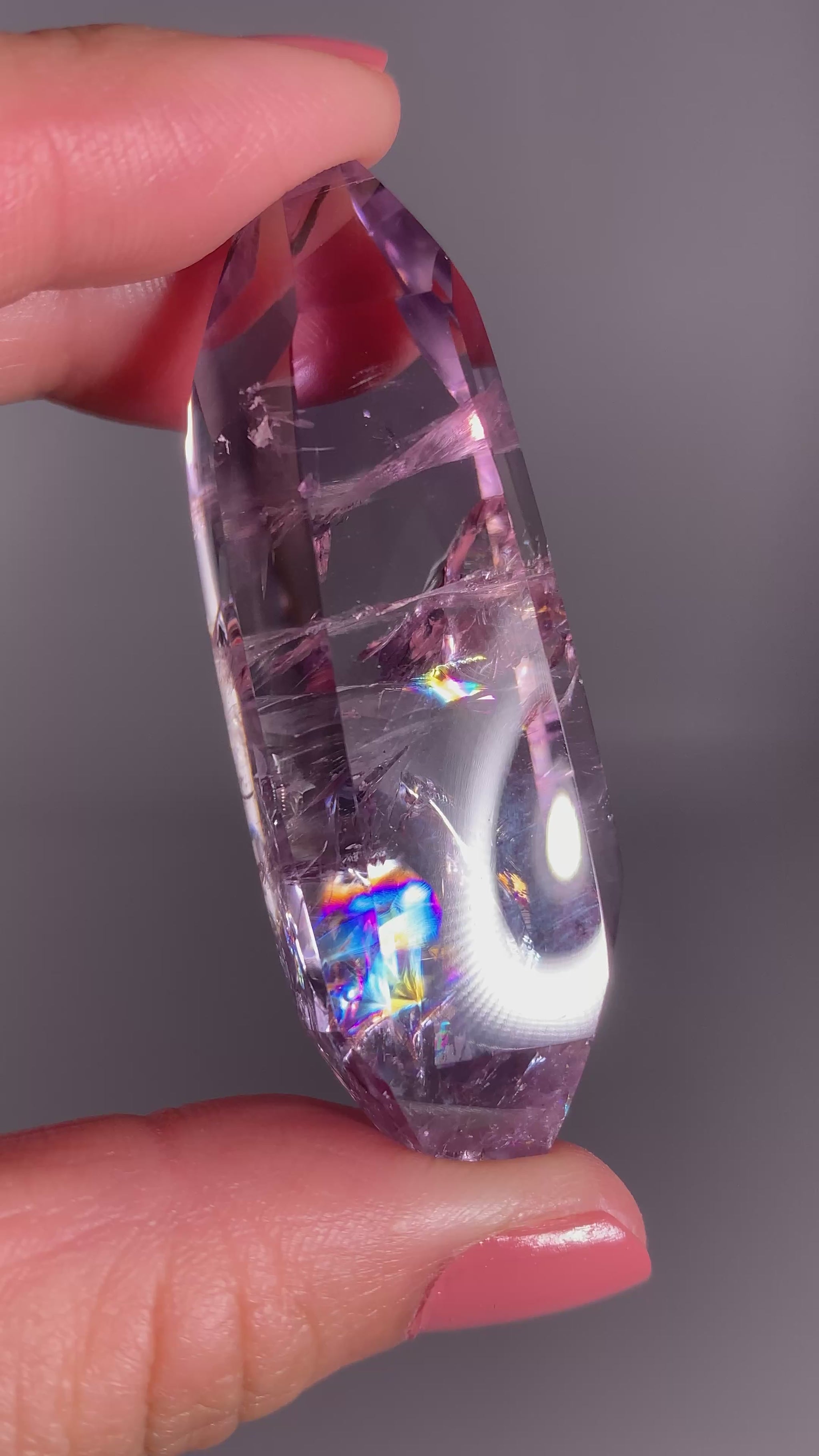 High-Quality Gem Crystal Amethyst Freeform with Natural Rainbow from Brazil