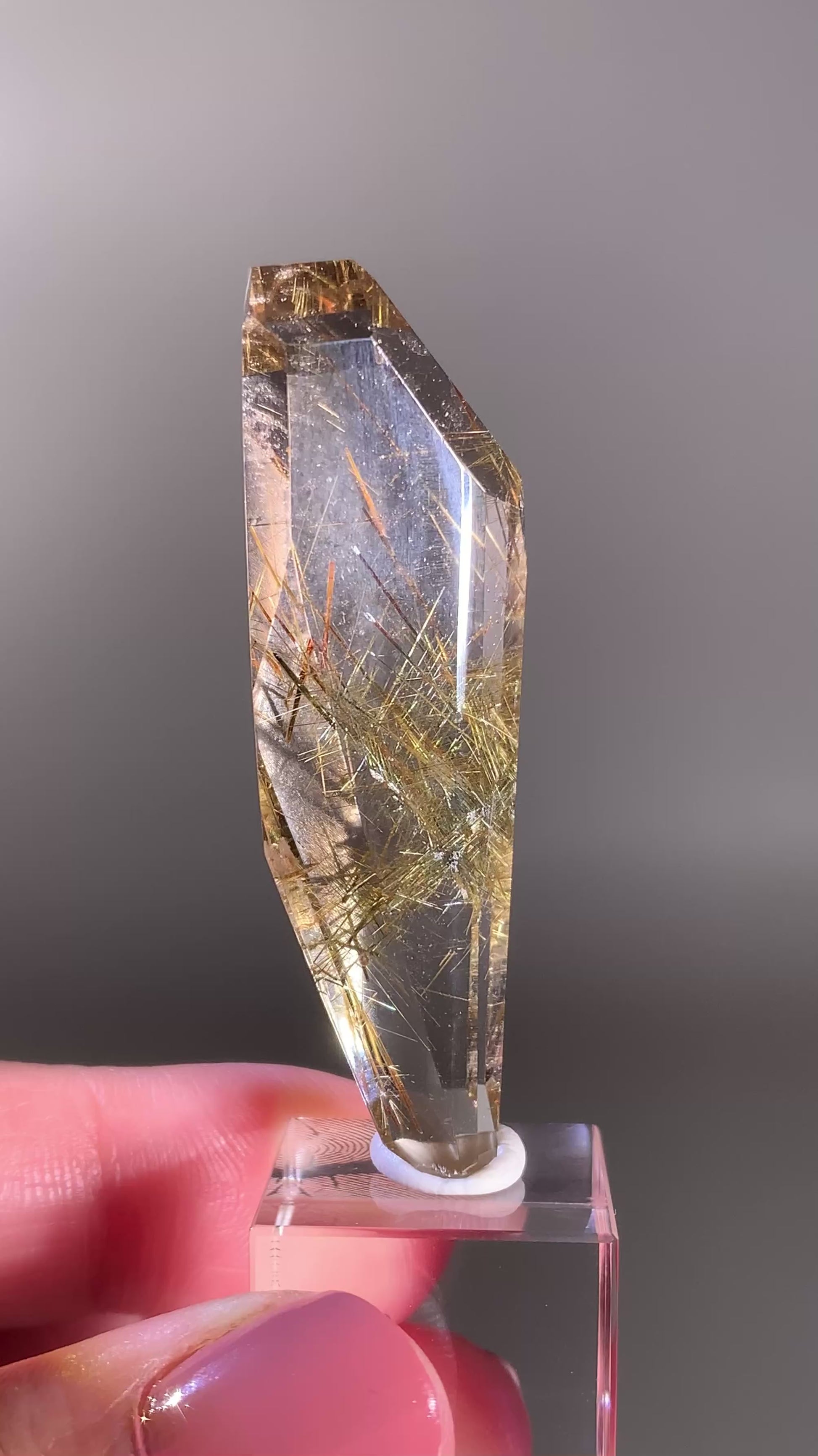 High-Quality Gold Rutile in Quartz Polished Freeform — Brazil