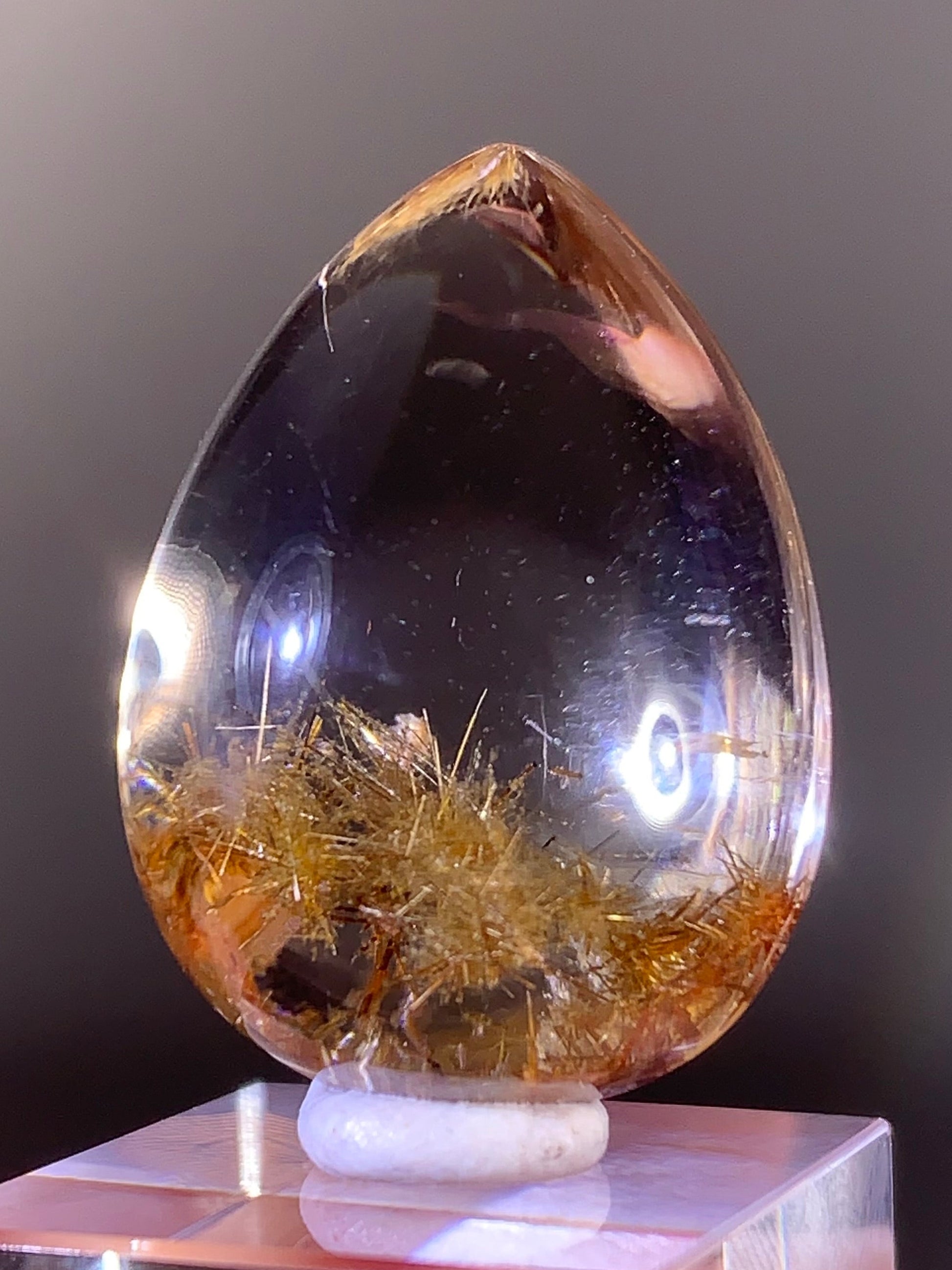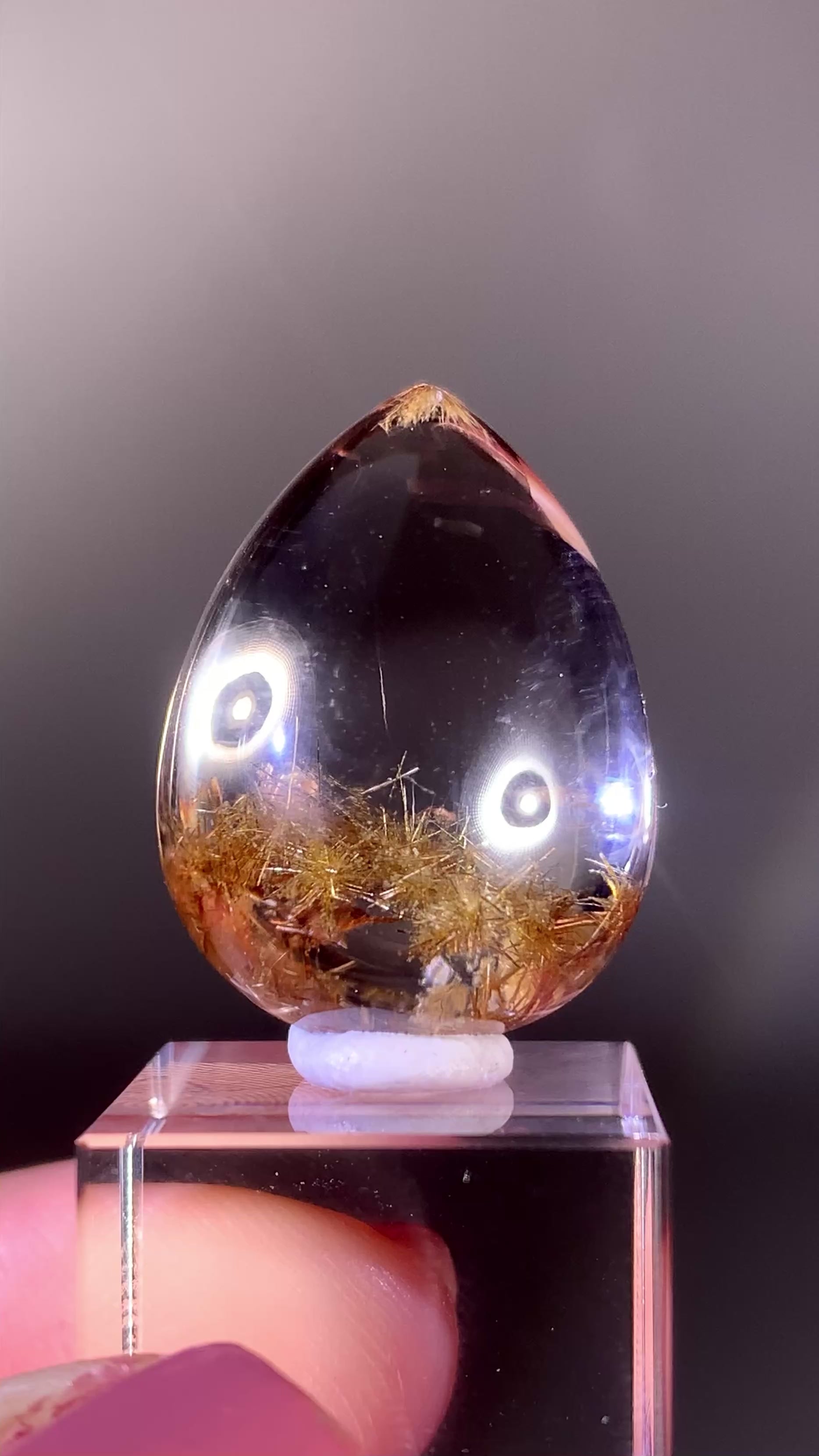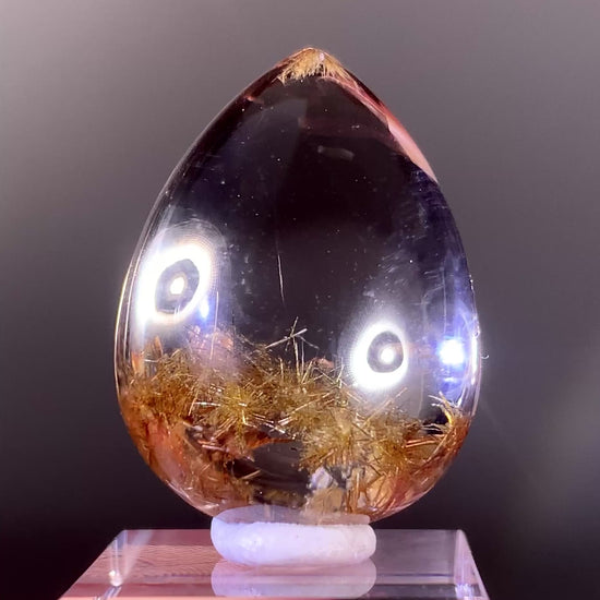 High-Quality Gold Starburst Rutilated Quartz | Tinsel Garland Pattern Polished Cabochon