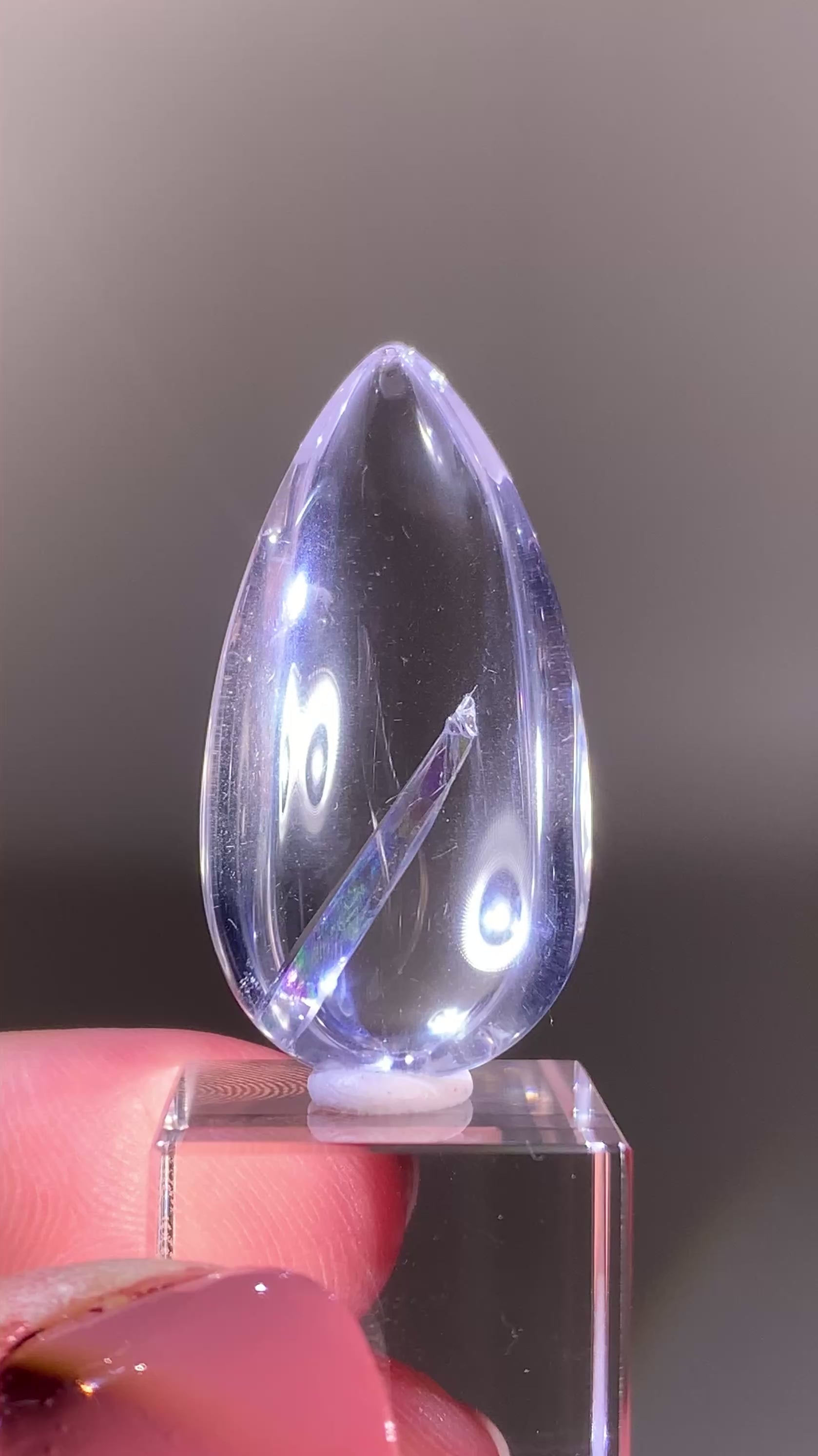 High-Quality Manifestation Quartz (Quartz-in-Quartz) with Rainbow Polished Teardrop