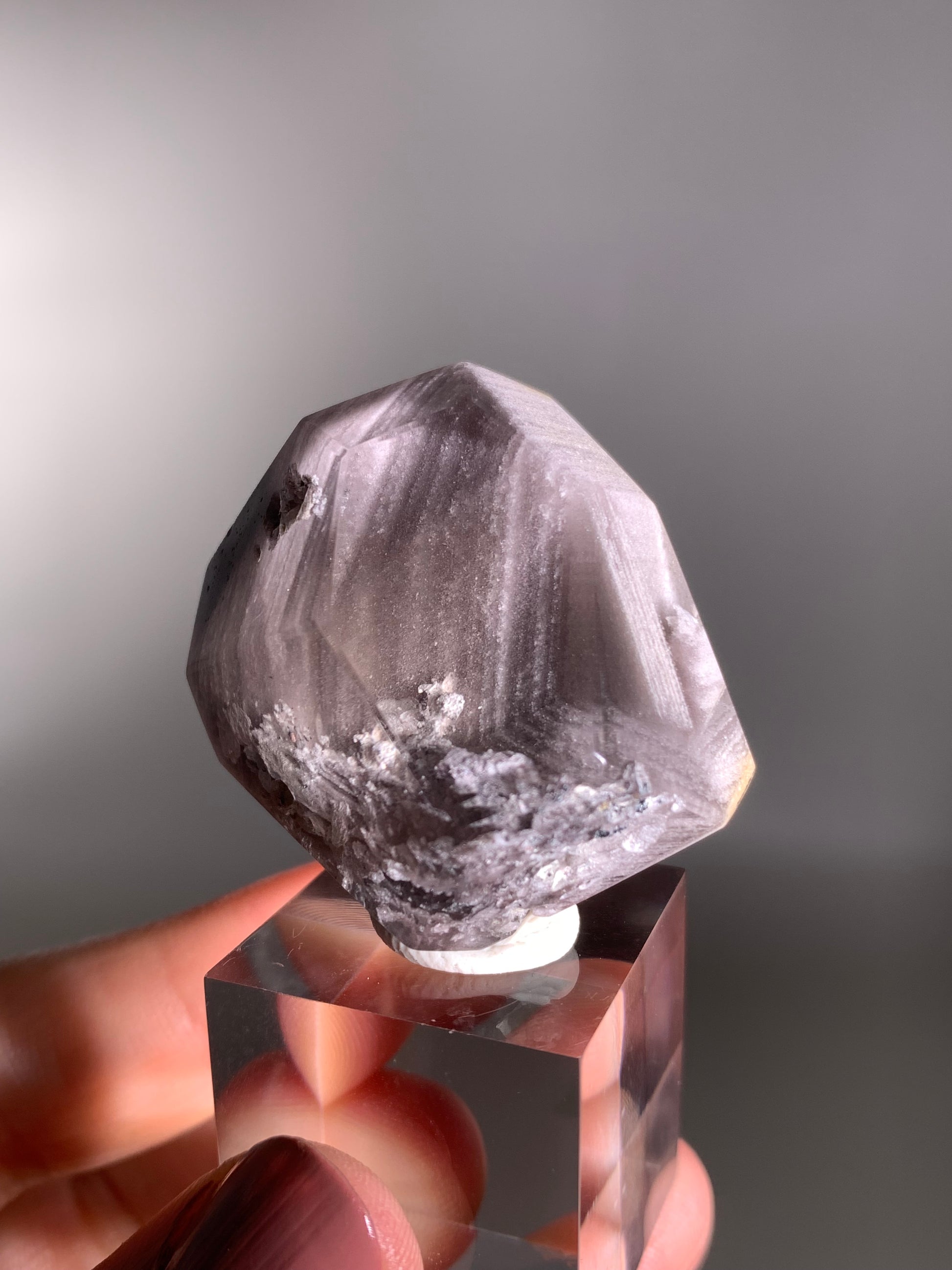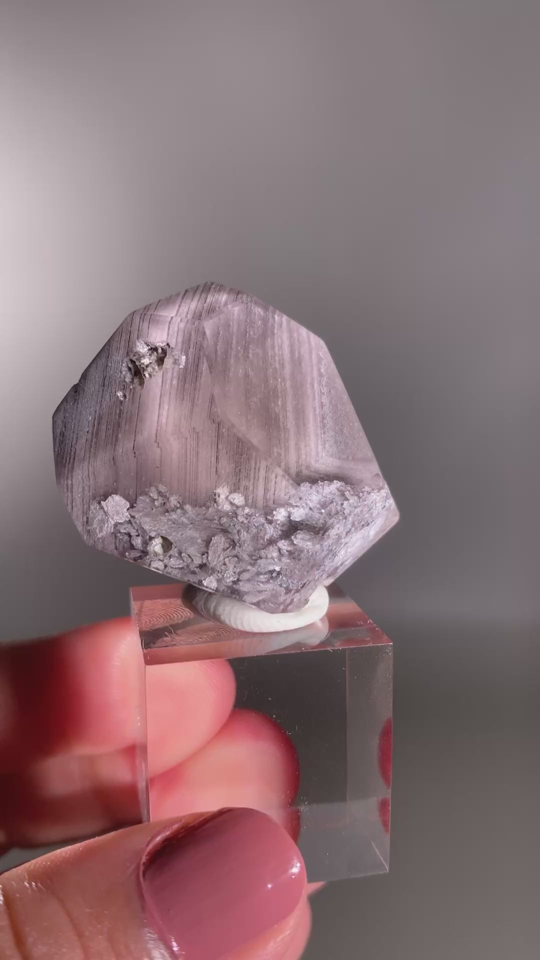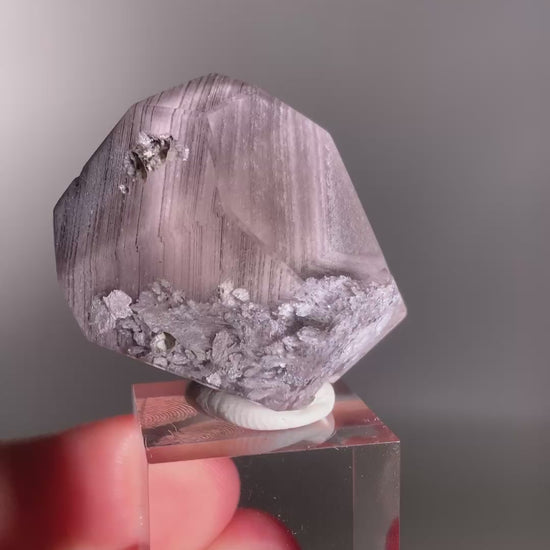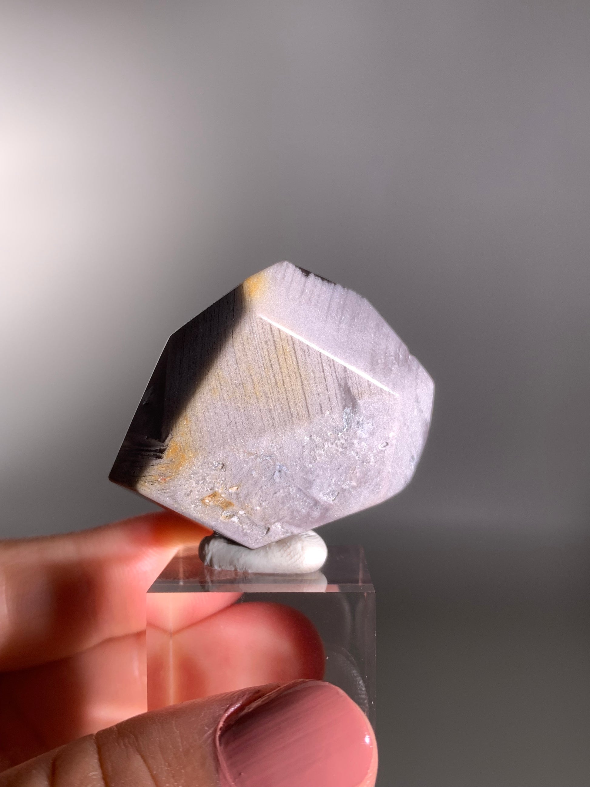 A high-quality polished Garden Quartz freeform from Brazil, featuring beautifully layered pink lithium inclusions — likely lepidolite or lithium-rich chlorite — suspended in clear quartz. The soft, pastel layers create a dreamy, landscape-like interior, combining exceptional clarity with calming mineral tones. A striking and serene example of lithium-included quartz.