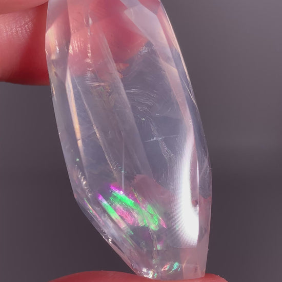 This high-quality Rose Quartz polished freeform from Brazil features gentle blush tones with beautiful natural rainbows that appear as the light moves. Finely polished to highlight its clarity and glow, the tower shape enhances its natural elegance and reflective depth. A lovely Brazilian rose quartz piece that feels both calming and visually captivating—perfect for display or collection.