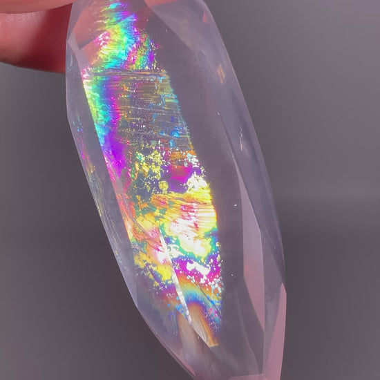 This high-quality Rose Quartz polished freeform from Brazil features gentle blush tones with beautiful natural rainbows that appear as the light moves. Finely polished to highlight its clarity and glow, the tower shape enhances its natural elegance and reflective depth. A lovely Brazilian rose quartz piece that feels both calming and visually captivating—perfect for display or collection.