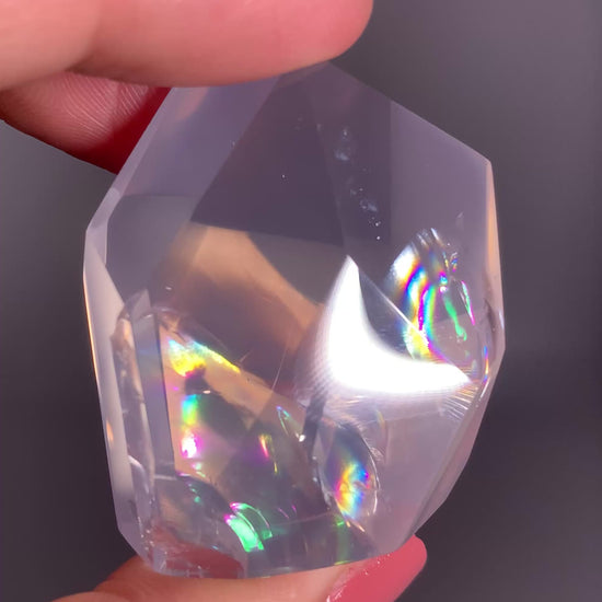 This high-quality Rose Quartz polished tower from Brazil features gentle blush tones with beautiful natural rainbows that appear as the light moves. Finely polished to highlight its clarity and glow, the tower shape enhances its natural elegance and reflective depth. A lovely Brazilian rose quartz piece that feels both calming and visually captivating—perfect for display or collection.
